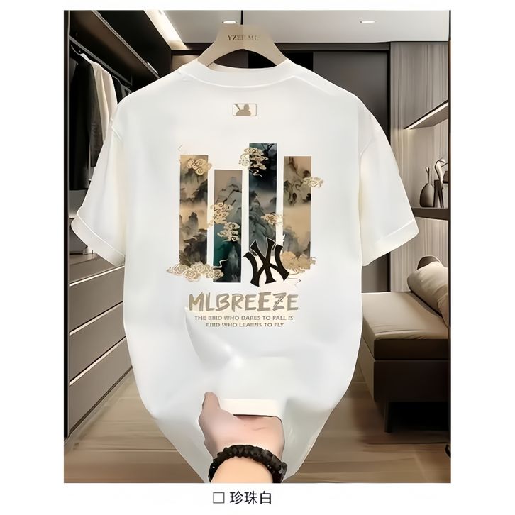 NY T-Shirt Pria Baju Kaos Pria American Rascal Handsome Cotton Short Sleeved Men's Summer Trendy Brand Print Baju Distro