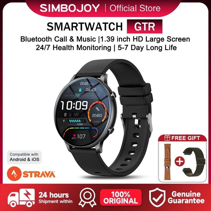 Samki Simbojoy GTR Smartwatch | Waterproof | 1.39 Inch HD Touch Screen | Kalkulator | Wallpaper Kustom | Jam Tangan Pria