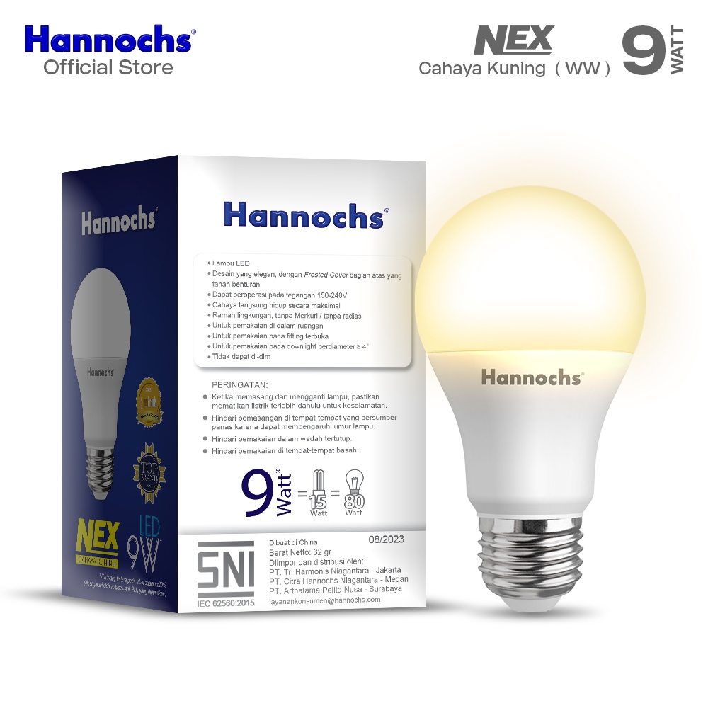 Hannochs Lampu Bohlam LED NEX 9W Cahaya Kuning ( BELI 3 GRATIS 1 )