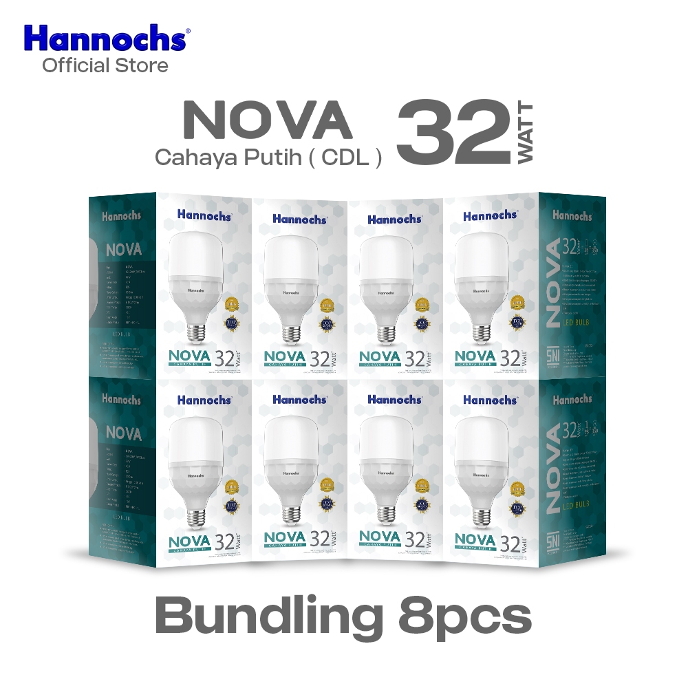 Hannochs Lampu Bohlam LED Nova 32W Cahaya Putih Paket isi 8pcs