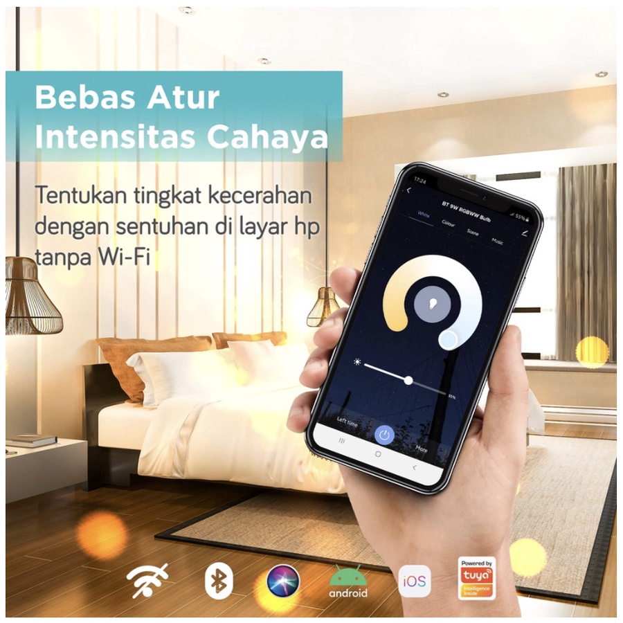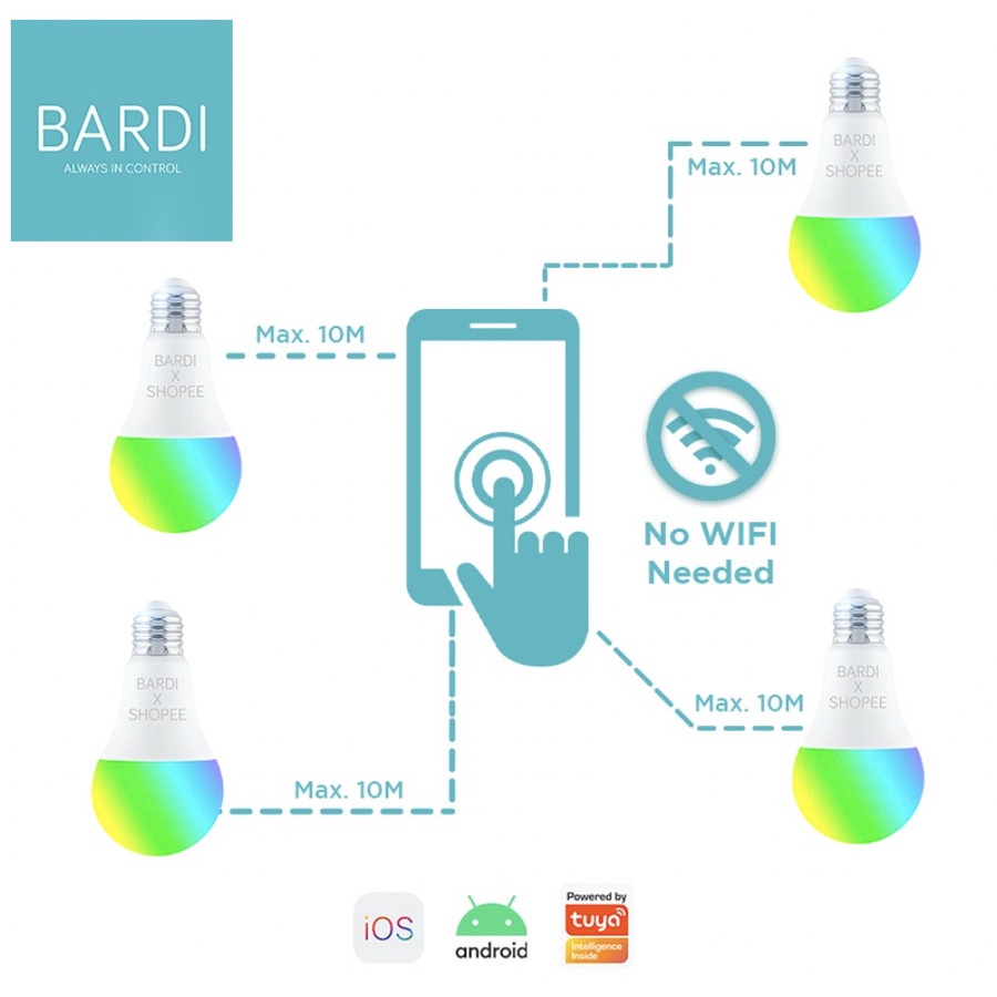 BARDI Smart Lamp LED Light Bulb RGB WW Bluetooth 9 Watt 9W Lampu Tidur Smart Beacon BT Bohlam Tuya