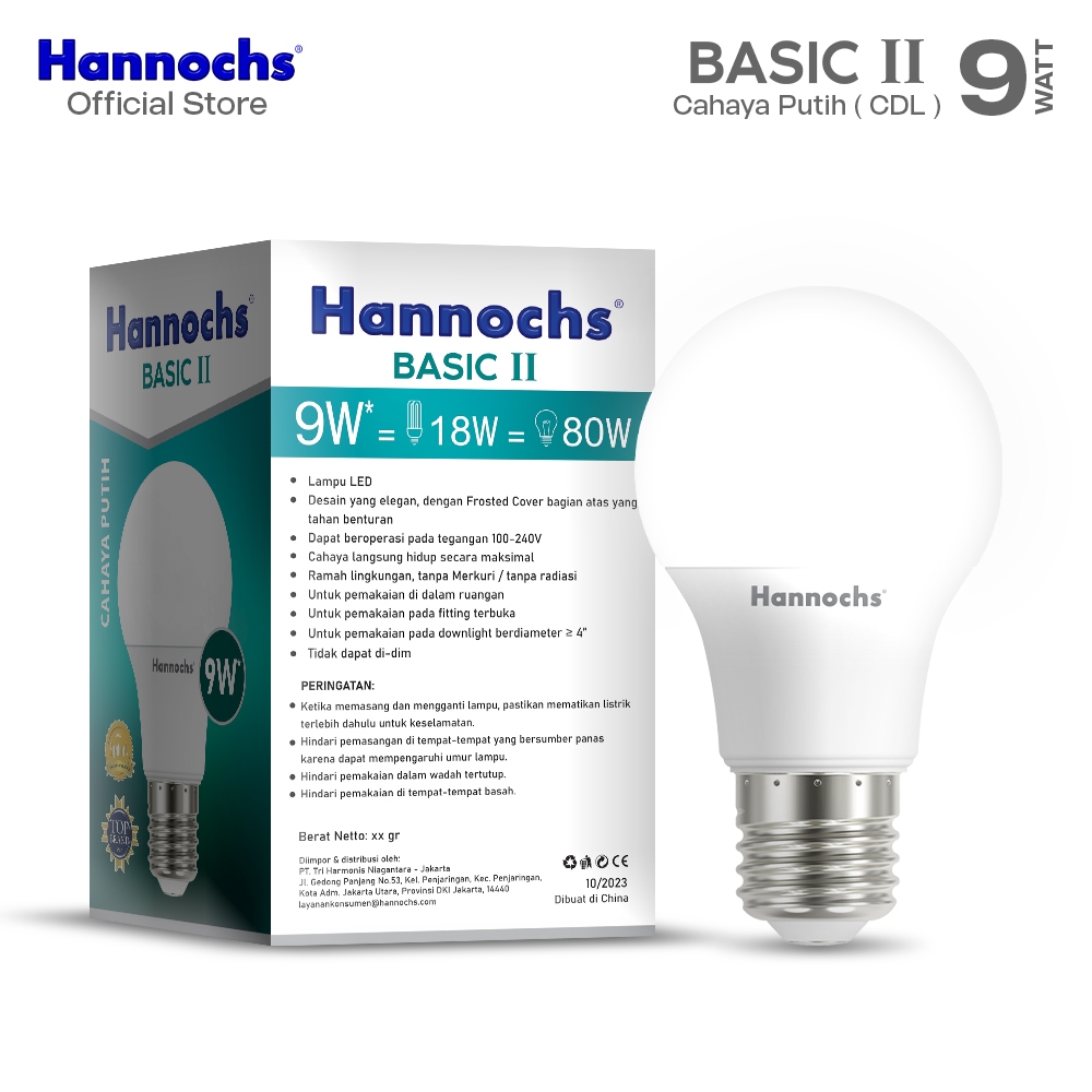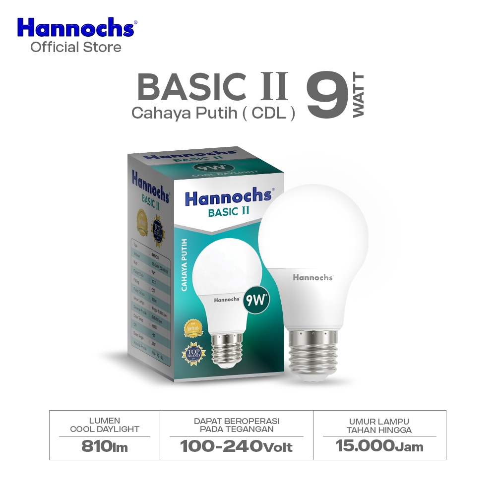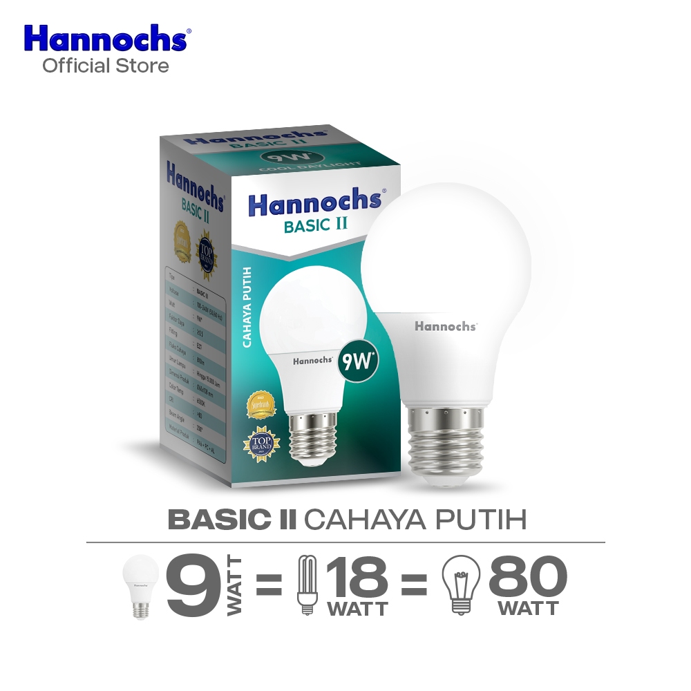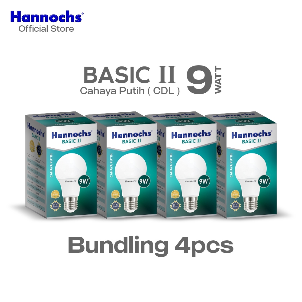 Hannochs Lampu Bohlam LED Basic II 9 watt Cahaya Putih isi 4pcs