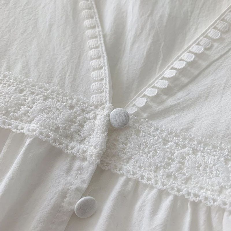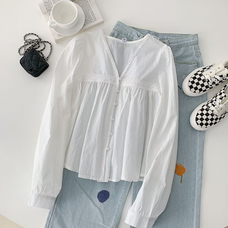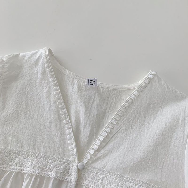 Jira Vneck Blouse Atasan Wanita Casual Korean Style Linen Angel mix Lace