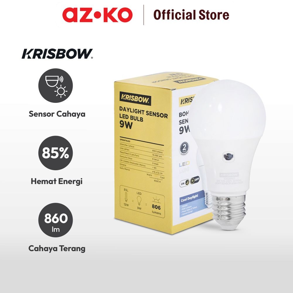 AZKO Krisbow Lumi Bohlam Led Sensor Cahaya 9 watt - Cool Daylight Bulb Lampu Indoor Outdoor Light Led Light Bolam