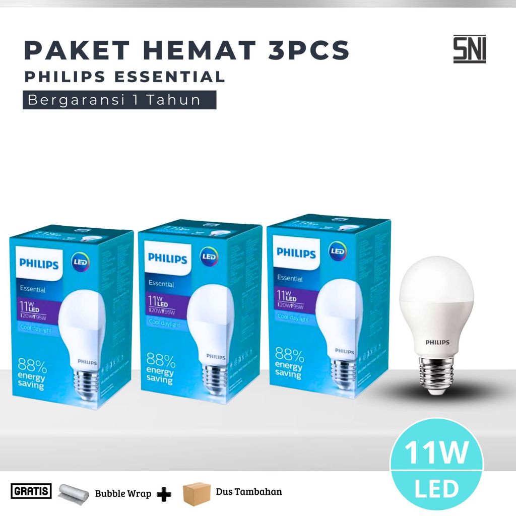 PAKET HEMAT 3PCS Lampu LED Philips Essential 5W 7W 9W 11W 13W 15WAT Bohlam Putih 6500K Original E27