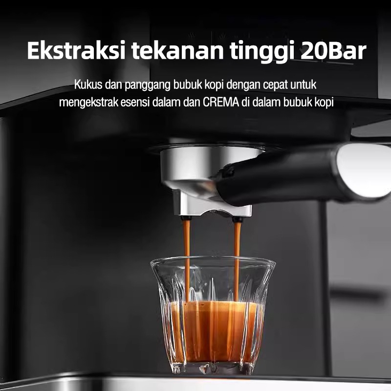 Mesin Kopi Semi Otomatis 20 Bar | Espresso Italia Uap Susu Busa untuk Rumah & Kantor