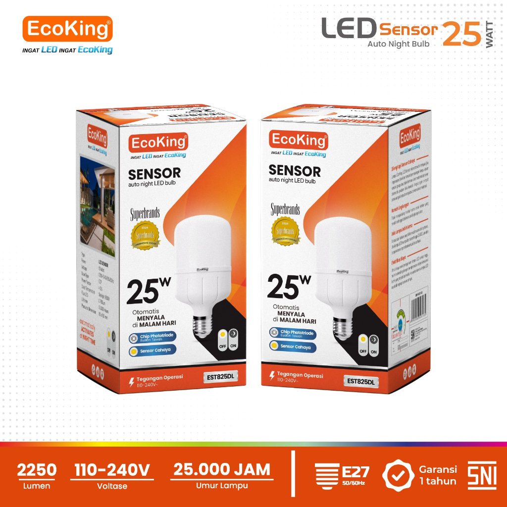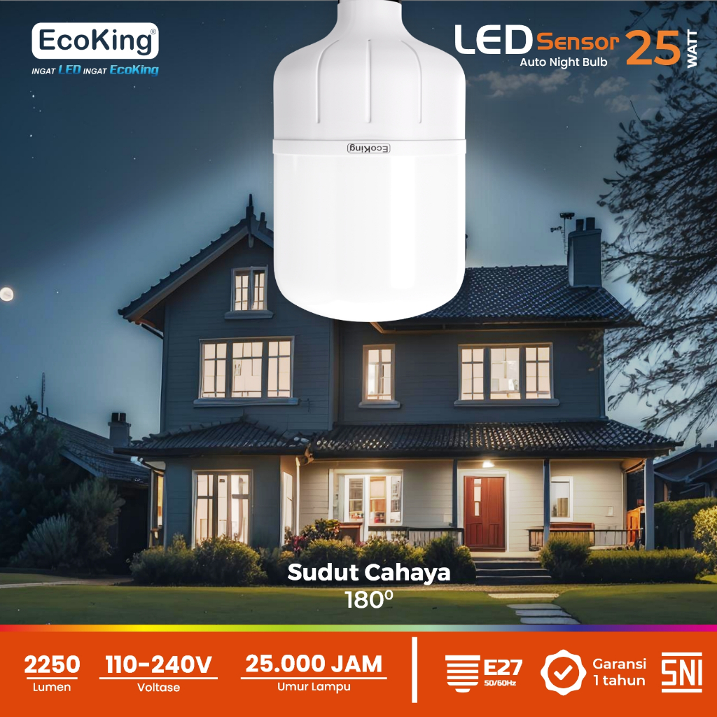 EcoKing Lampu Bohlam LED Rumah Sensor Cahaya Otomatis Light Bulb 25W Cahaya Putih (EST825DL)