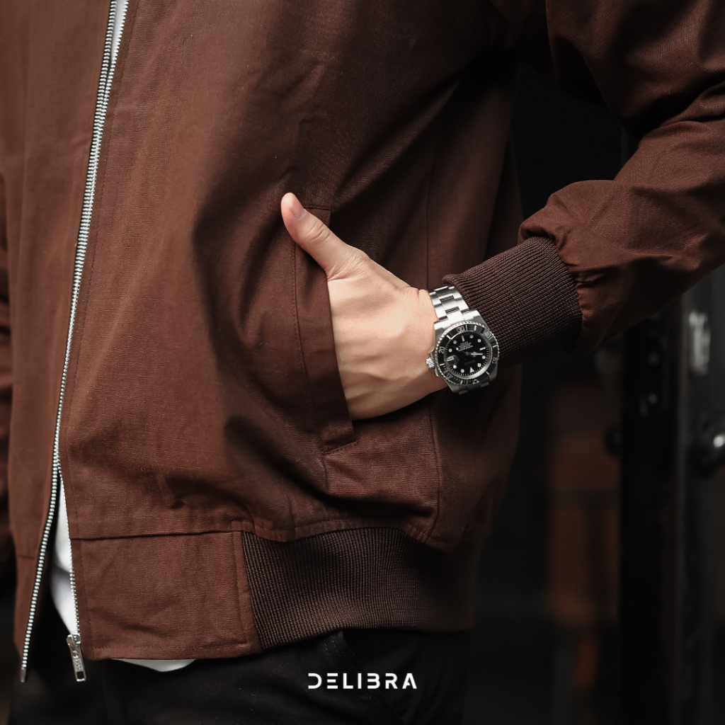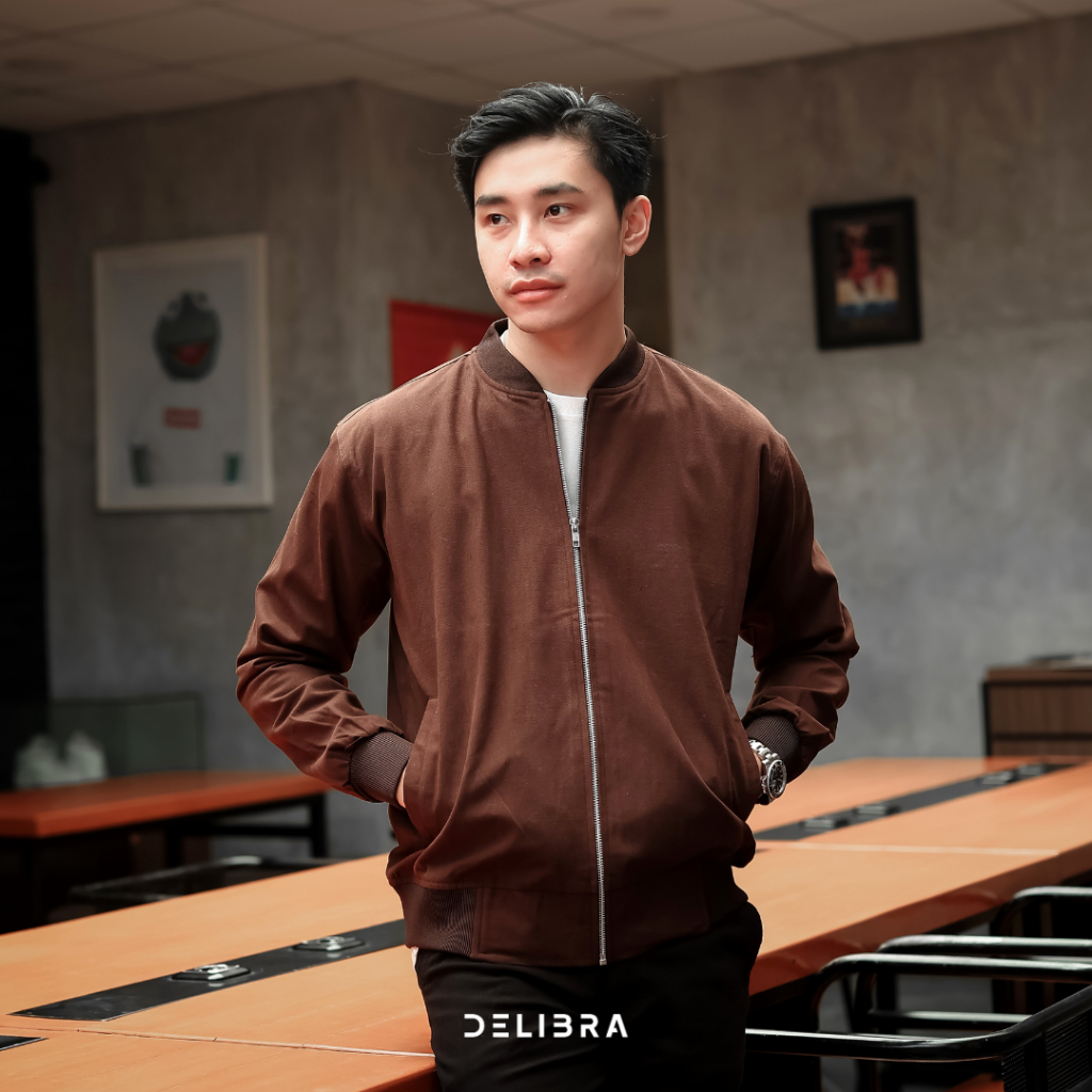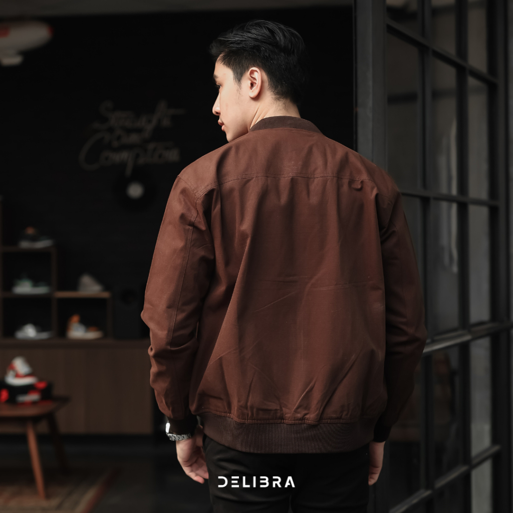 Delibra Jaket Bomber Canvas Pria Brown
