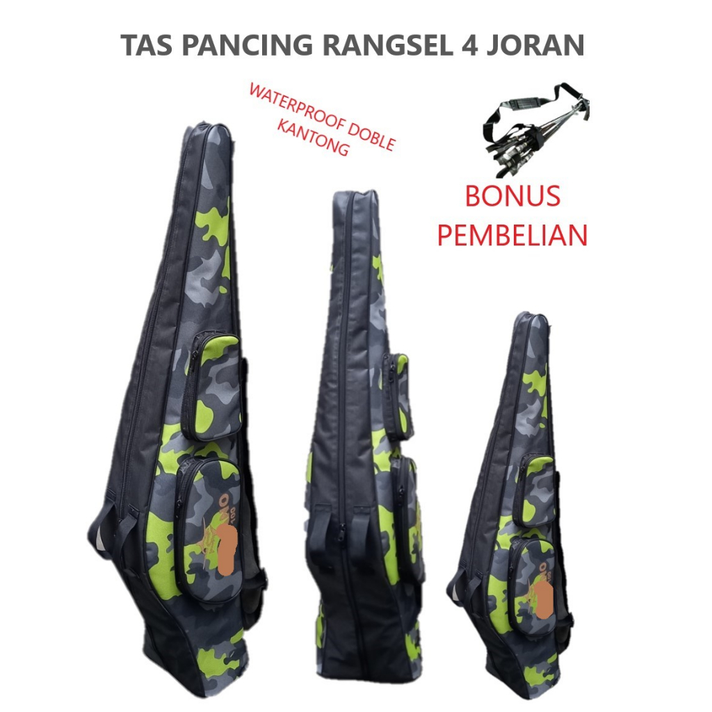 Tas pancing rangsel double kantong anti air 3 joran ukuran 80cm 100cm 120cm bonus rodbelt