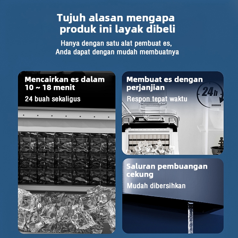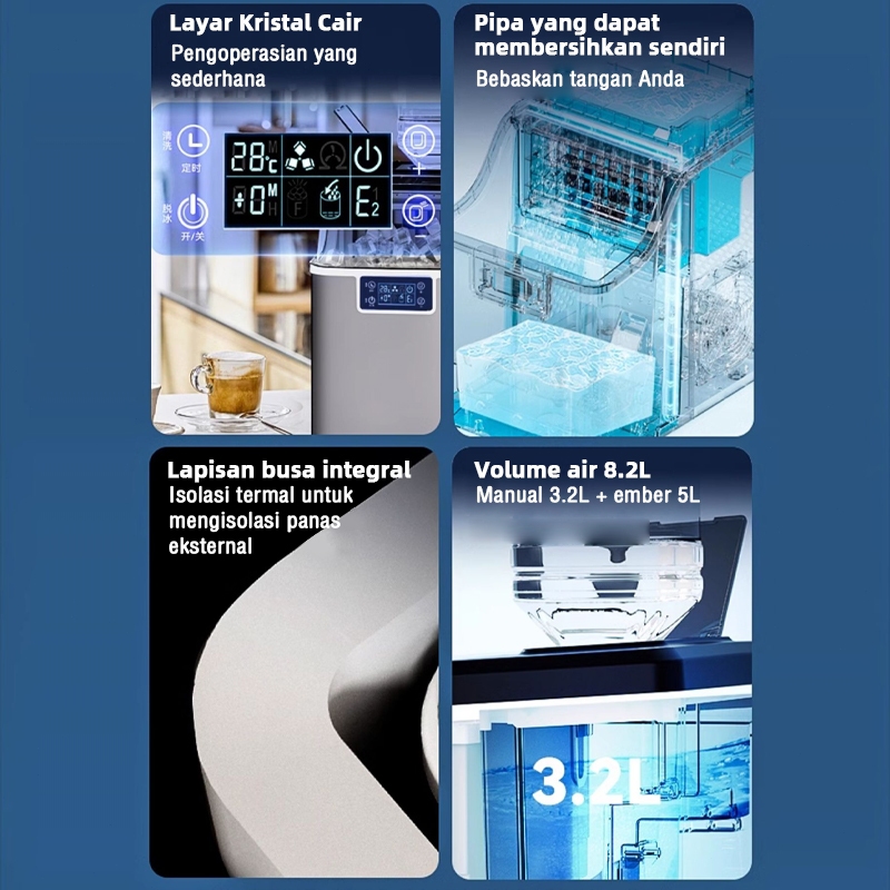 Mesin Es Batu Otomatis 25–30Kg/Hari | Ice Maker Cube & Kotak 220V Hemat Listrik untuk Rumah & Usaha