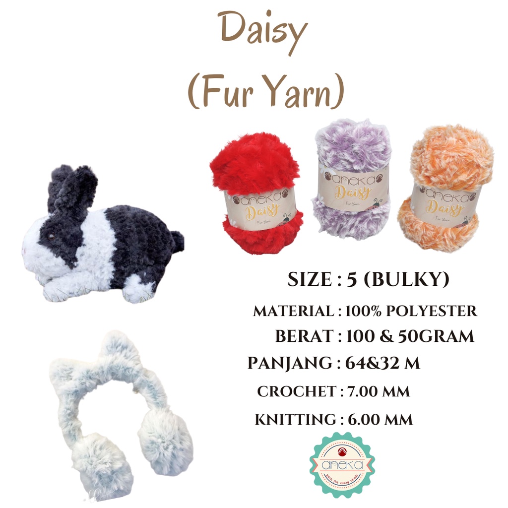 KATALOG - Benang Rajut Daisy / Bulu / Soft Fluffy Faux Fur Yarn - 32 dan 64 m