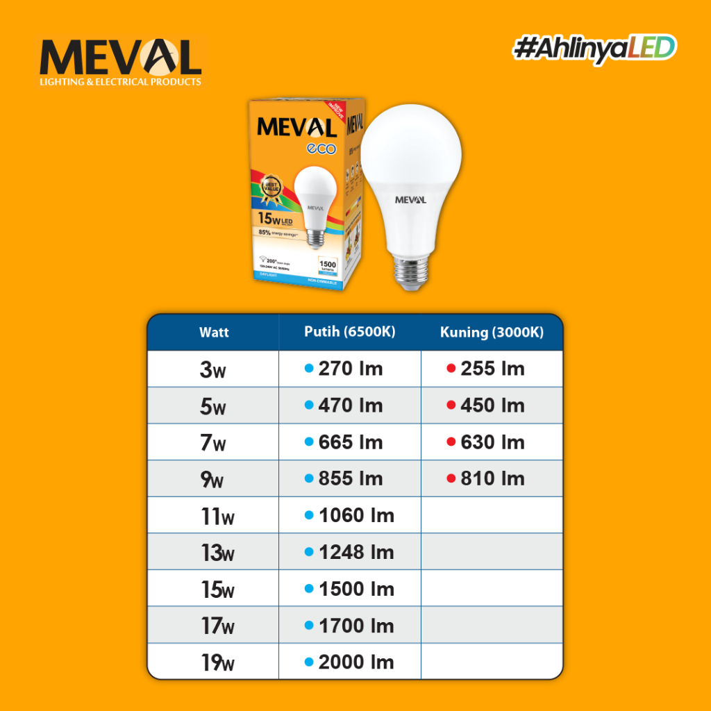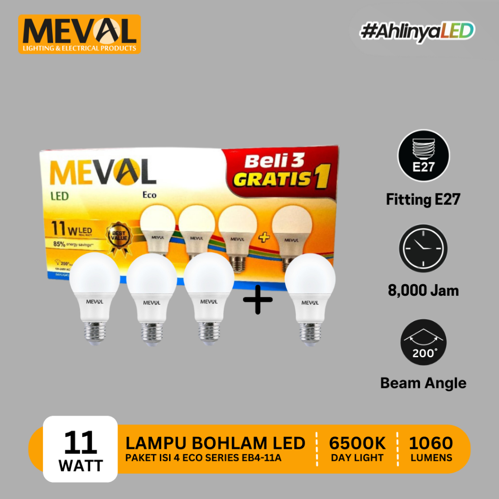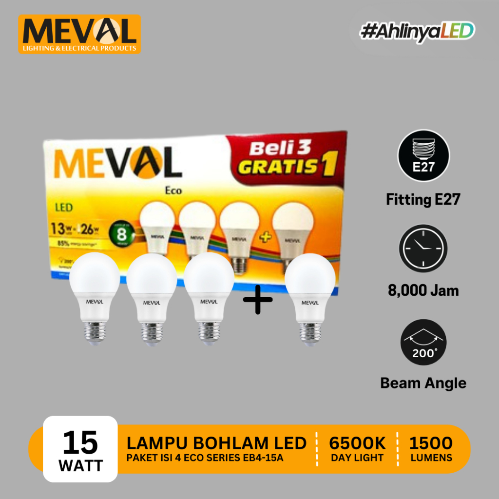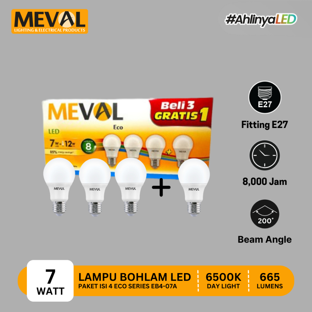 Meval Lampu LED ECO 5W Putih Terang Isi 4