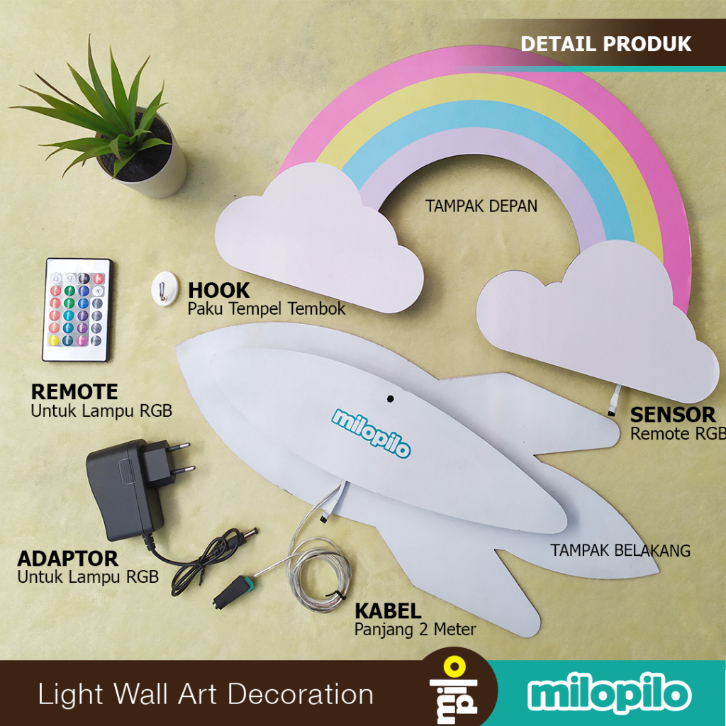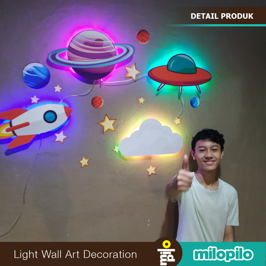 Lampu Tidur Anak roket, awan, ufo, planet, astronot, Dekorasi Kamar, Kado Anak Cowok Milopilo