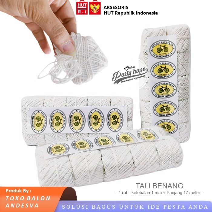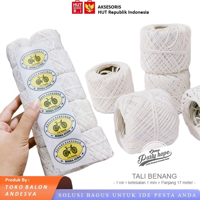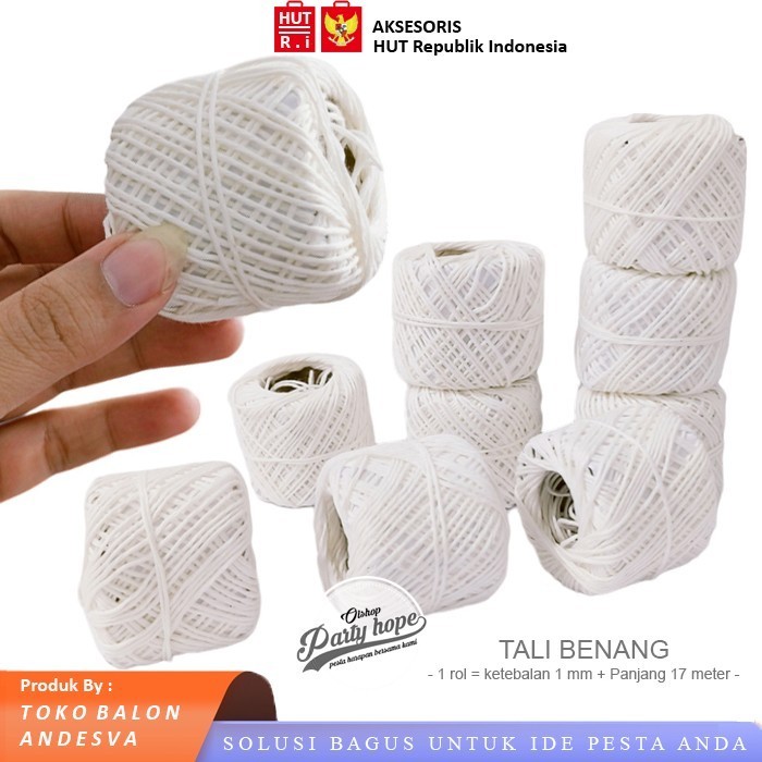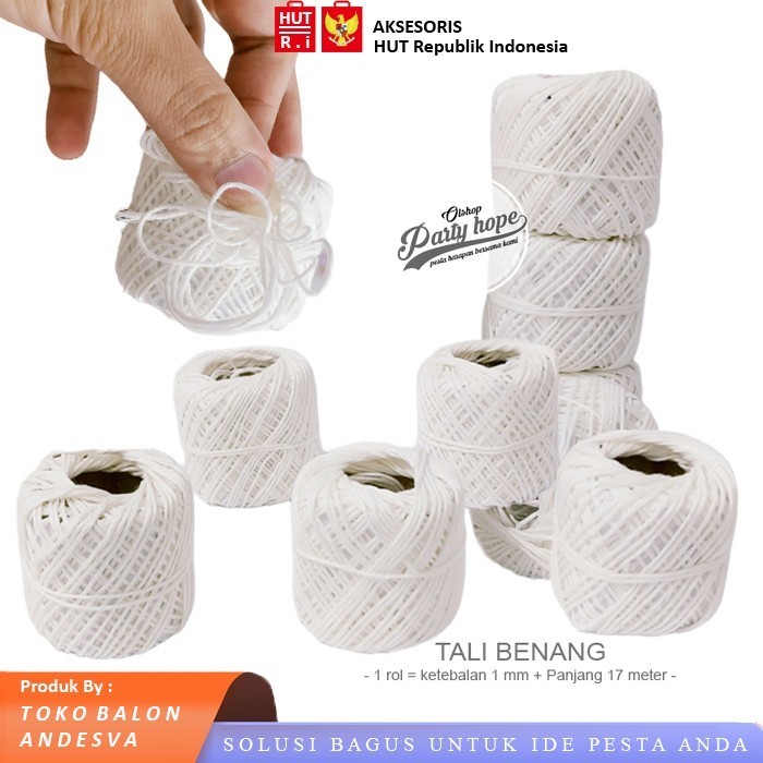 [isi 10] Tali Benang Bendera Plastik Merah Putih / Tali Benang Kasur Putih / Tali Benang Banan Putih / Tali Benang Keraj