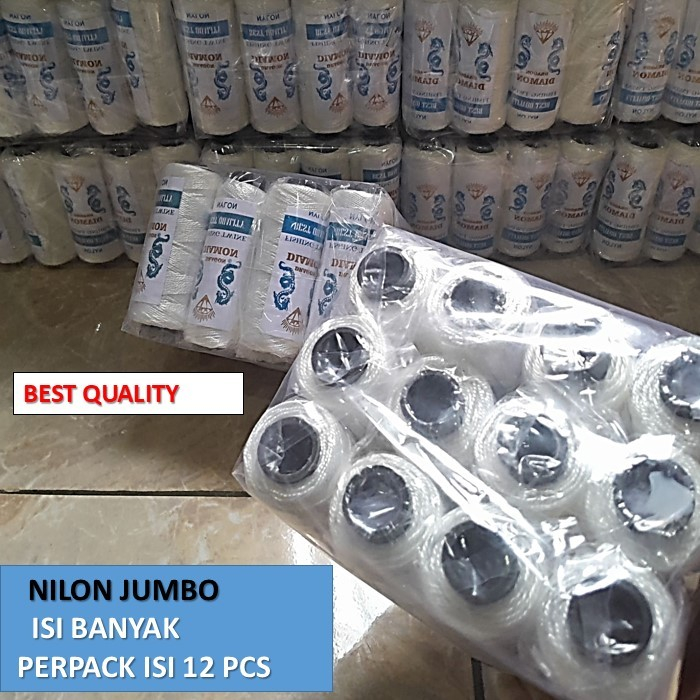 Benang Nilon Cap Diamond Benang Nylon jumbo Warna Putih Brait Isi Banyak Perpack 12 Pcs