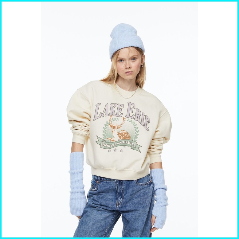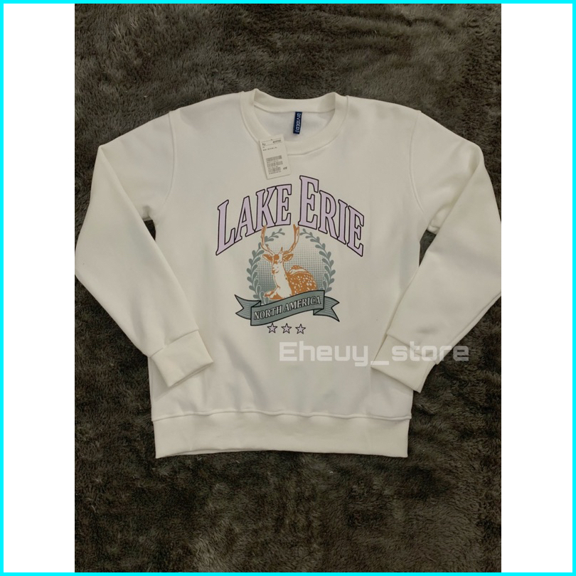 Crewneck Lake Erie Cream Reguler Size Broken White Sweater Wanita Soft Cream