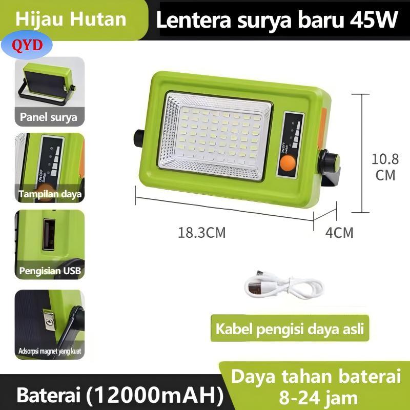 QYD Solar Lampu Emergency LED Tahan Lama 8000 lumen Senter cas IPX4 Tahan Air Lampu Darurat