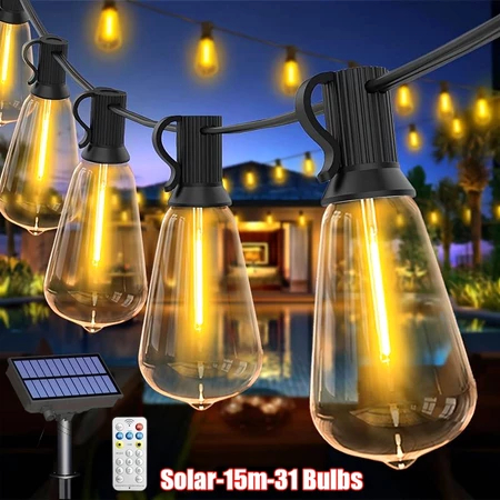 30 Bohlam LED 15 Meter Tenaga Surya Panel Kuning Fitting Lampu Gantung Outdoor Matahari Tahan Air
