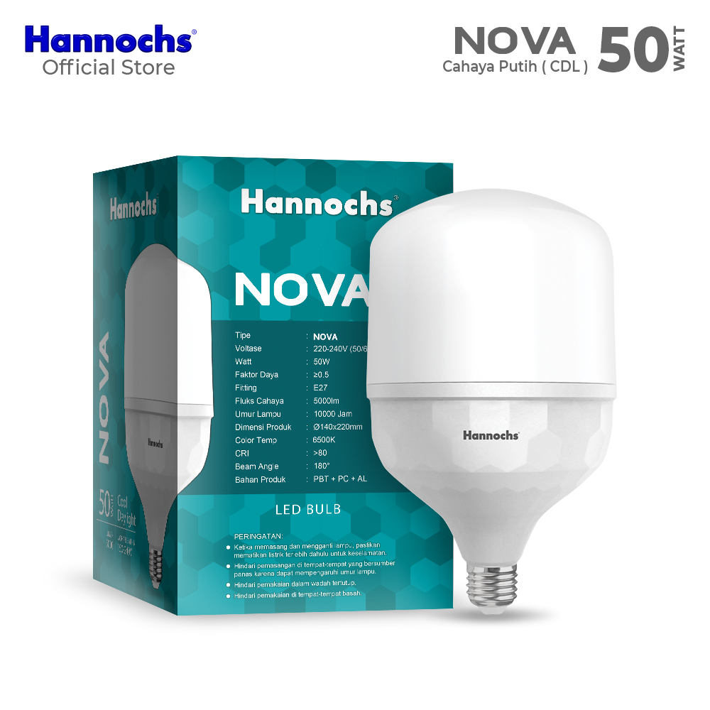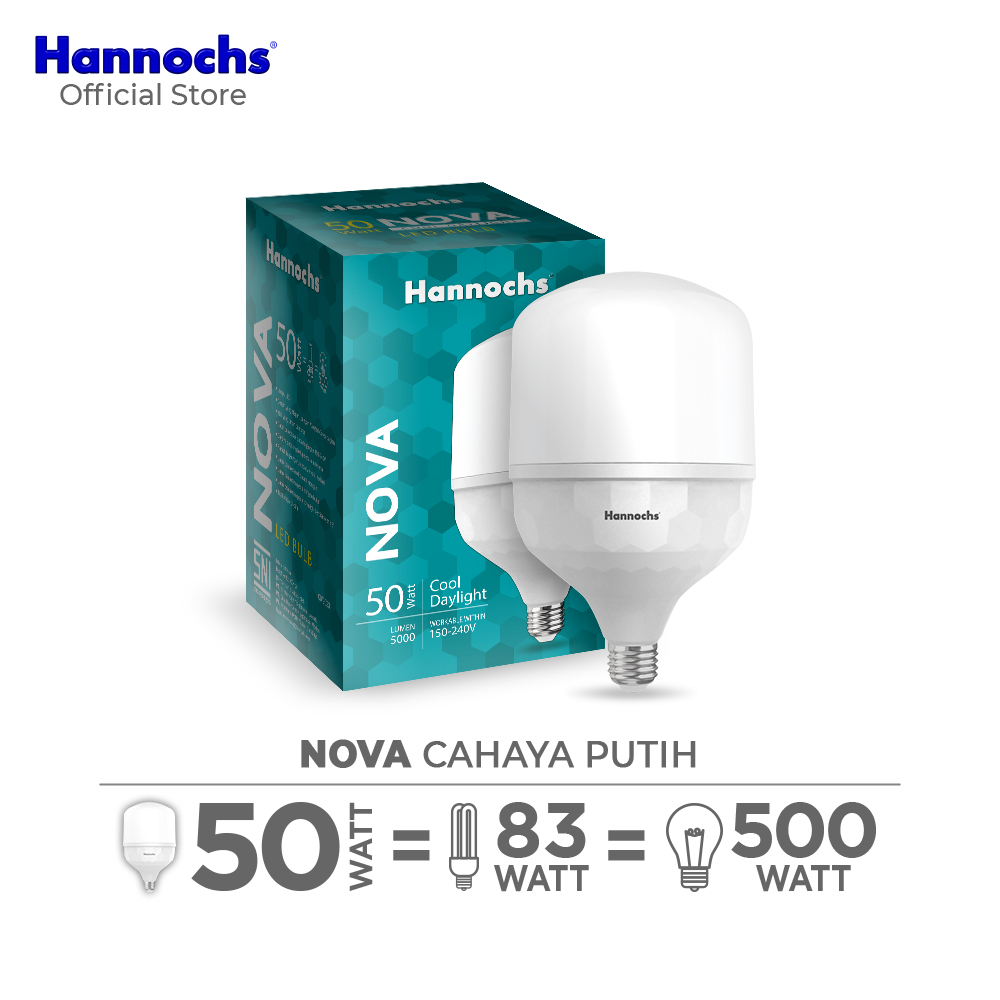 Hannochs Lampu Bohlam LED Nova 50W Cahaya Putih Paket isi 3pcs