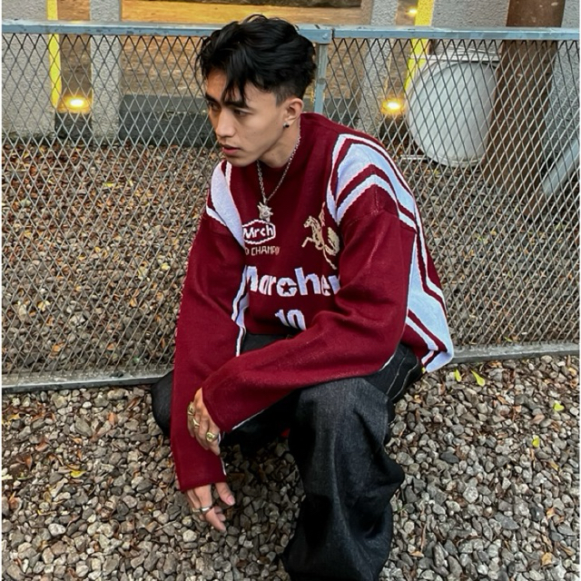 Marcher.Ltd Jersey Crewneck Knitted Oversize Boxy Fit -Dust Maroon