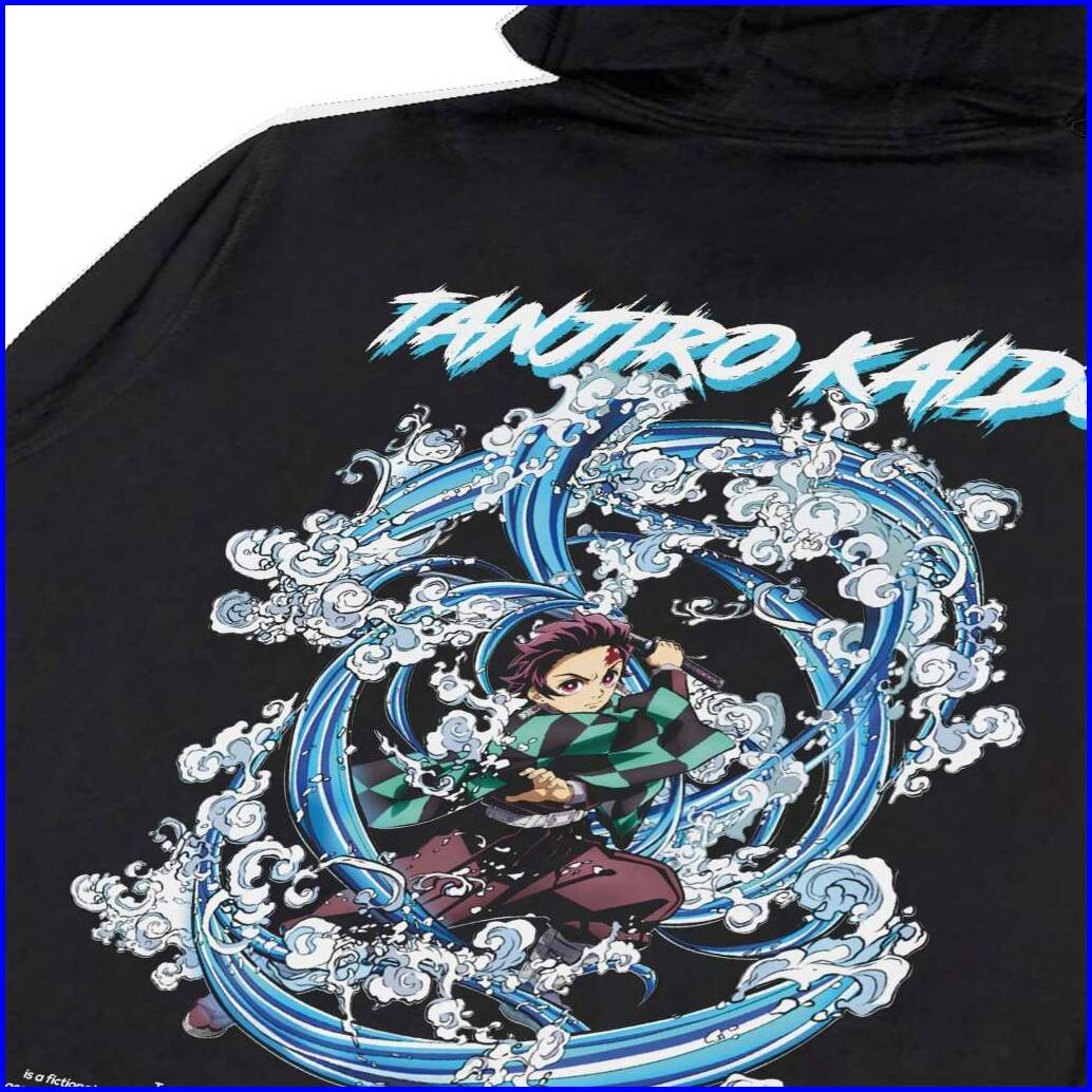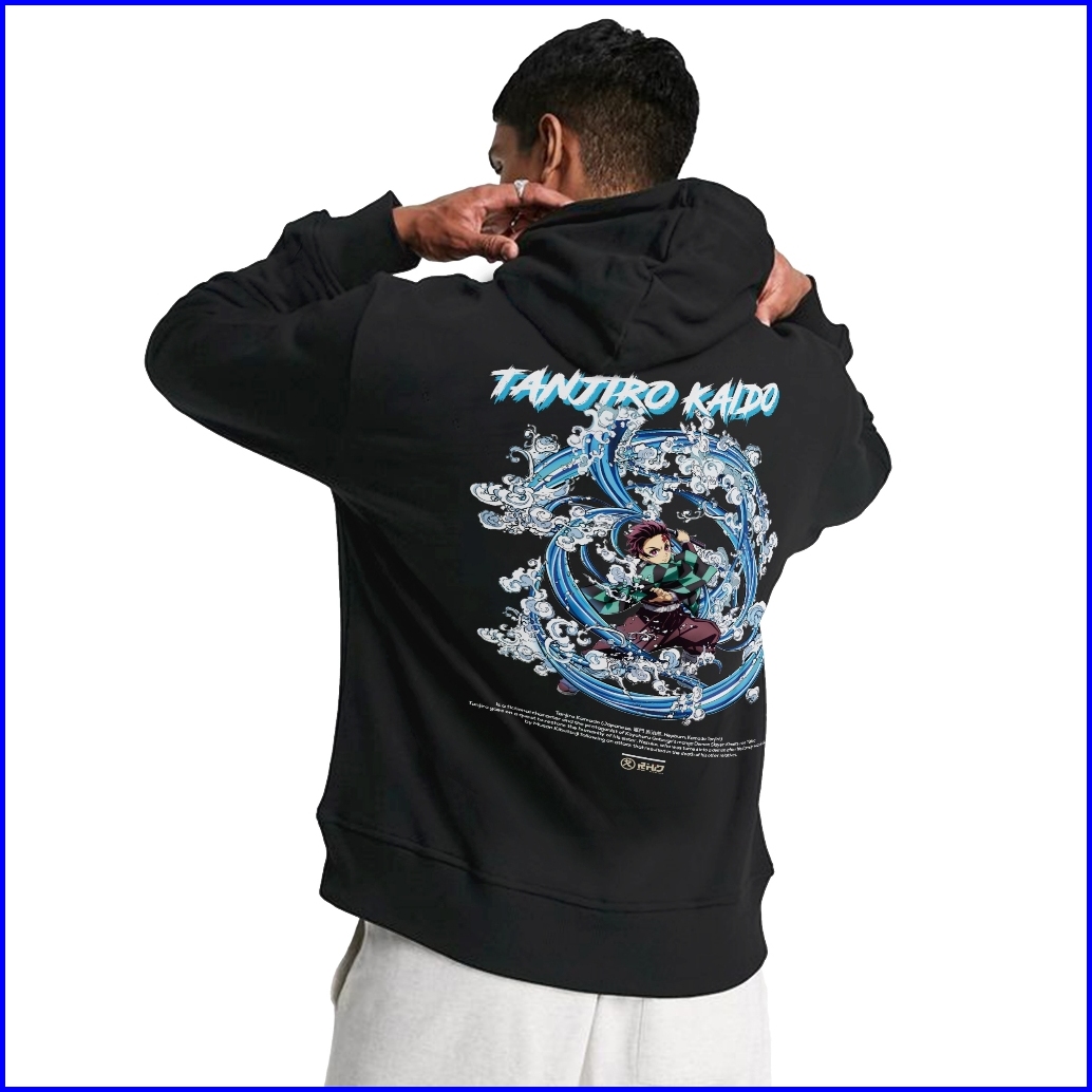 Rhid - Hoodie Hitam Logo Anime Demons Slayer Tanjiro Kaido Cooton Fleece