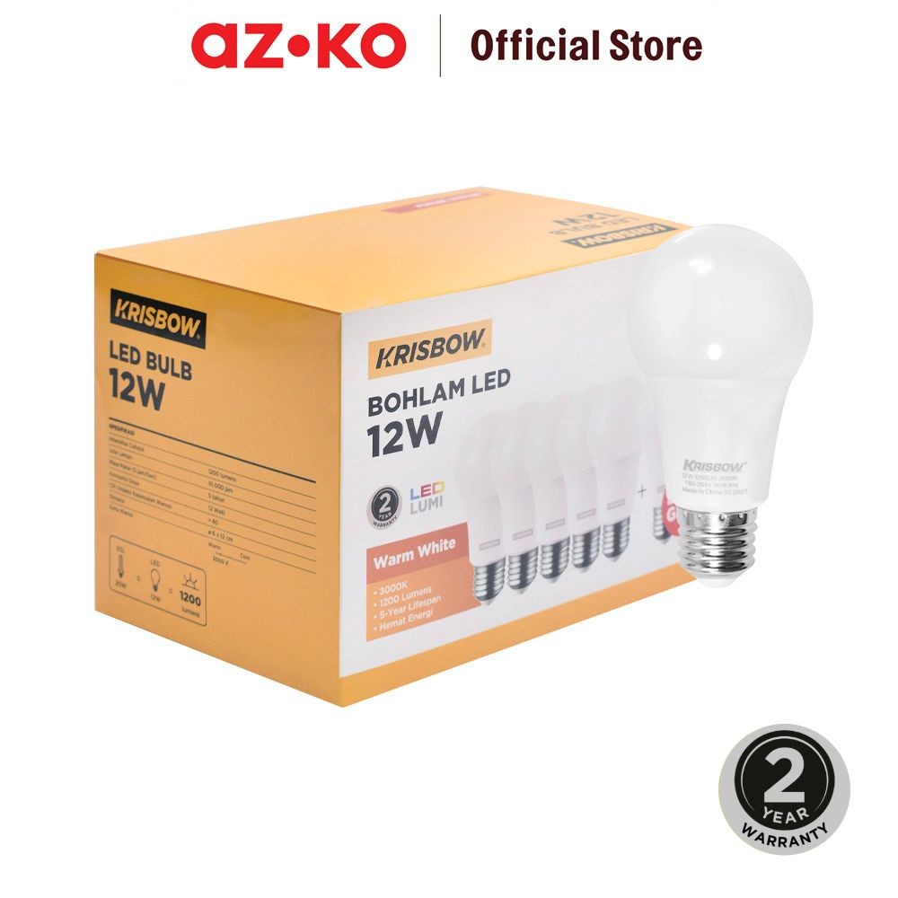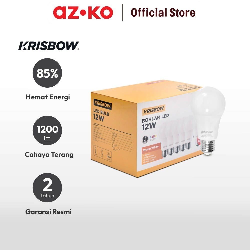 AZKO Krisbow Set 6 Pcs Lumi Bohlam Led 12 watt Bulb Lampu Cahaya Putih Indoor Outdoor Light Led Light Bolam