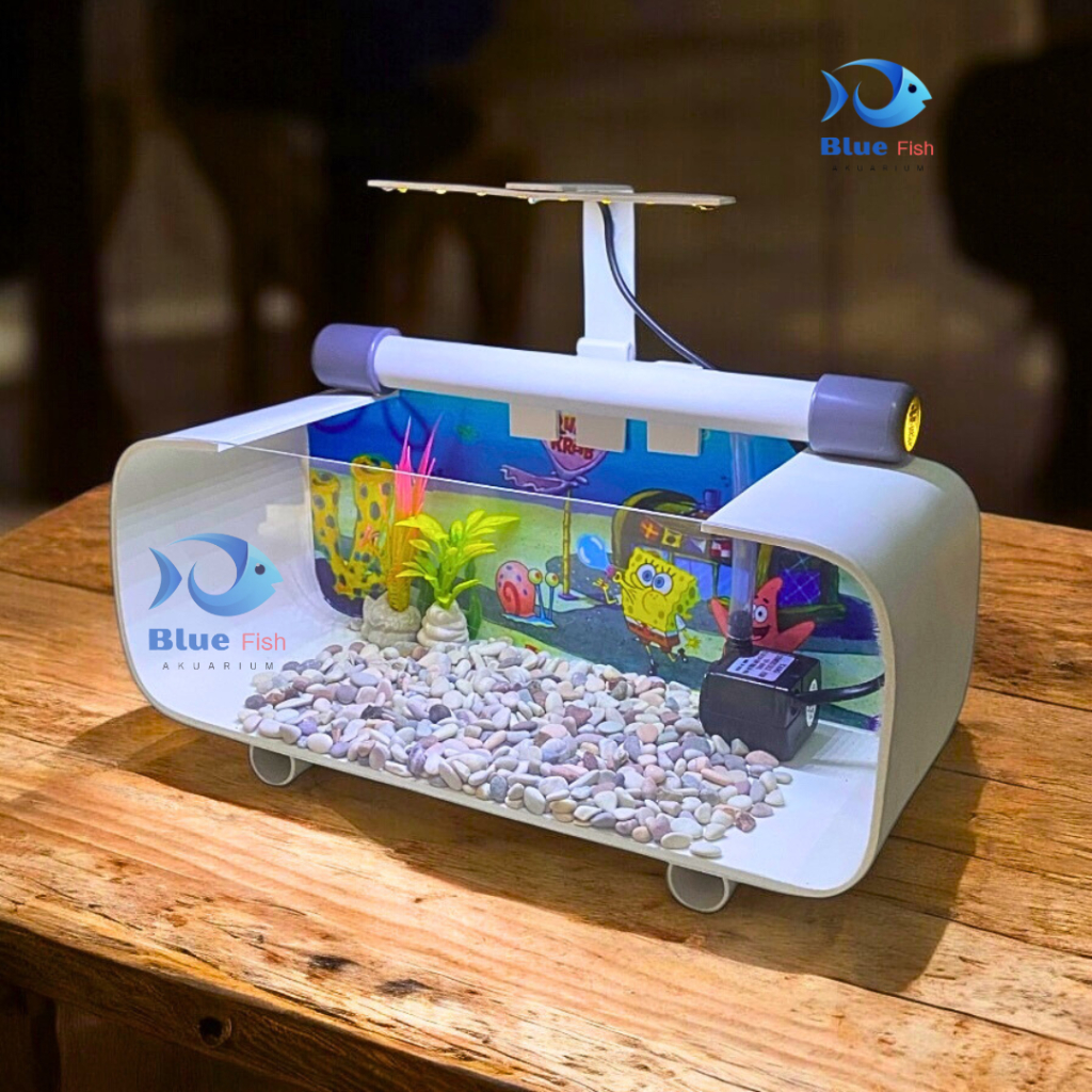 Aquarium minimalis full set lengkap Akuarium akrilik lengkap dengan mesin pompa filter sirkulasi dan lampu aquarium (P-0