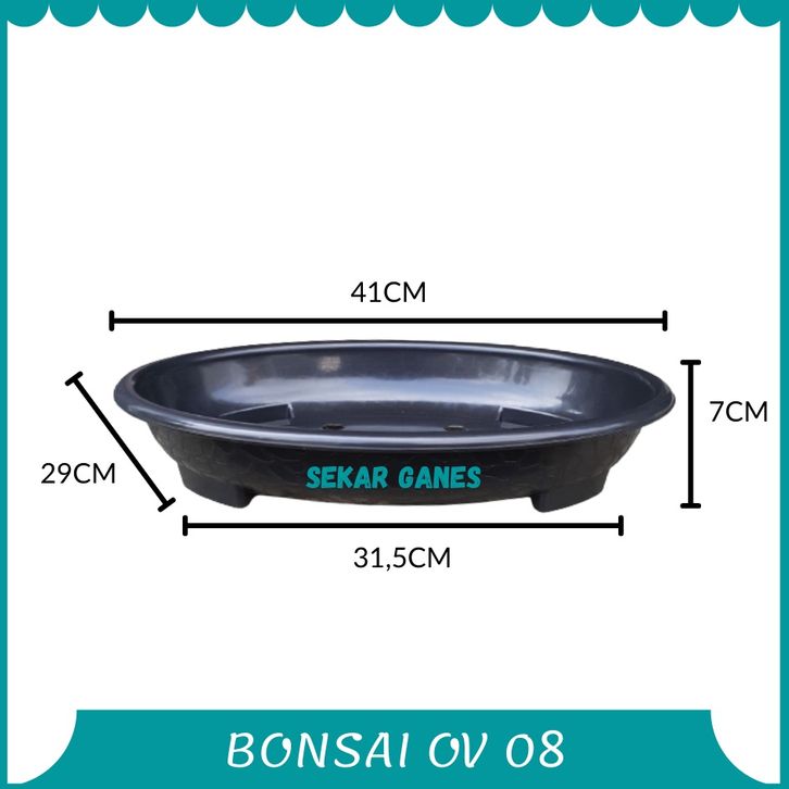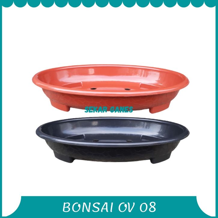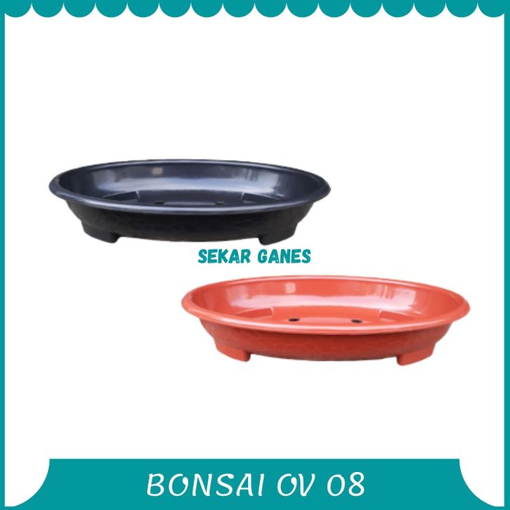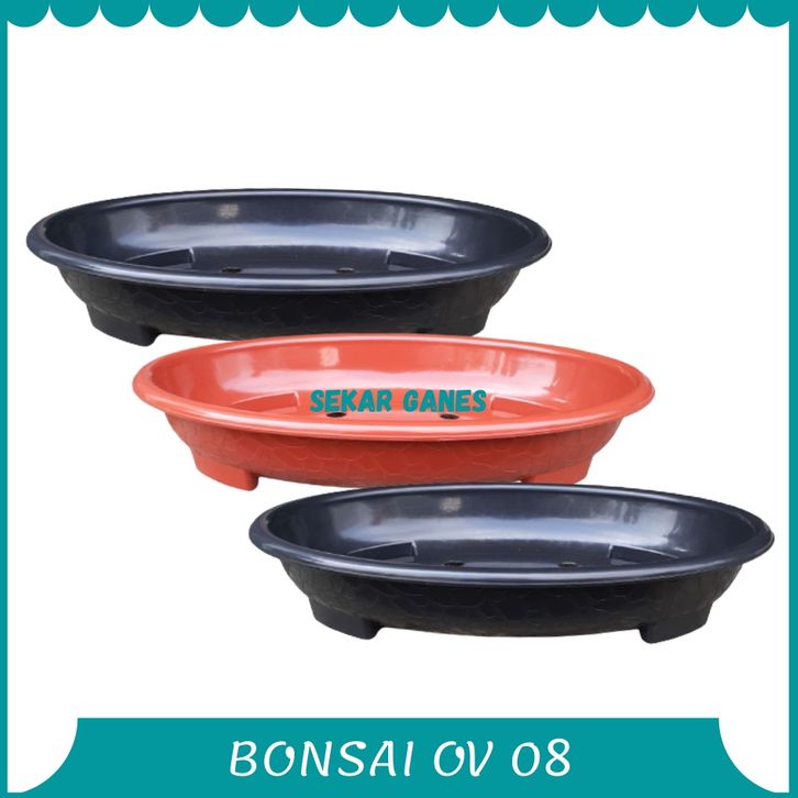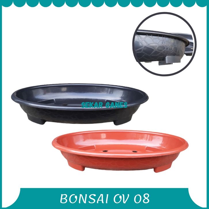 ( HARGA PROMO ) 3 PCS Pot Bonsai Oval Ov 08 Putih Hitam Merah Bata Coklat Pot Bunga Plastik Bonsai Motif Batu Alam