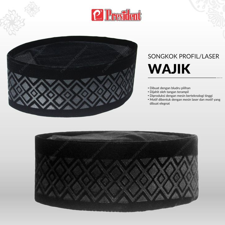 Songkok Hitam Peci Hitam Kopiah Hitam Motif Laser Profil Tipe Wajik Beludru Premium