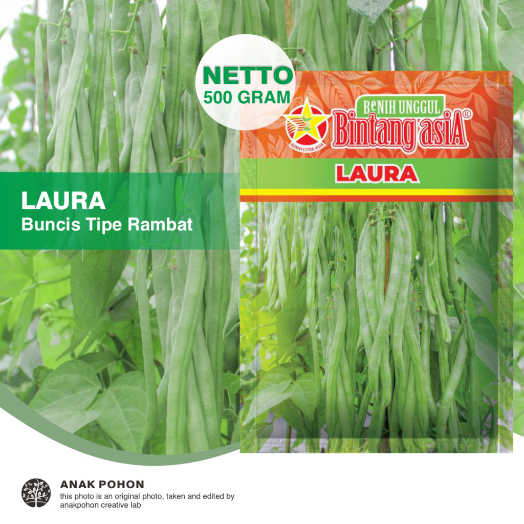 (1 PACK) Benih Buncis Hijau LAURA Polong Gilig Panjang Seeds - Bintang Asia - 500 GRAM