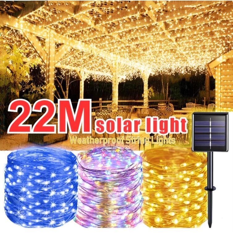 Lampu Tumbler 12M/22M Lampu Hias 17 Agustus Kelap Kelip Lilit Pohon Outdoor Lampu Hias Tenaga Surya