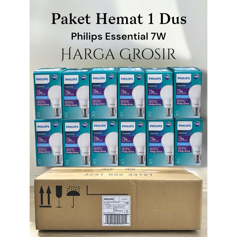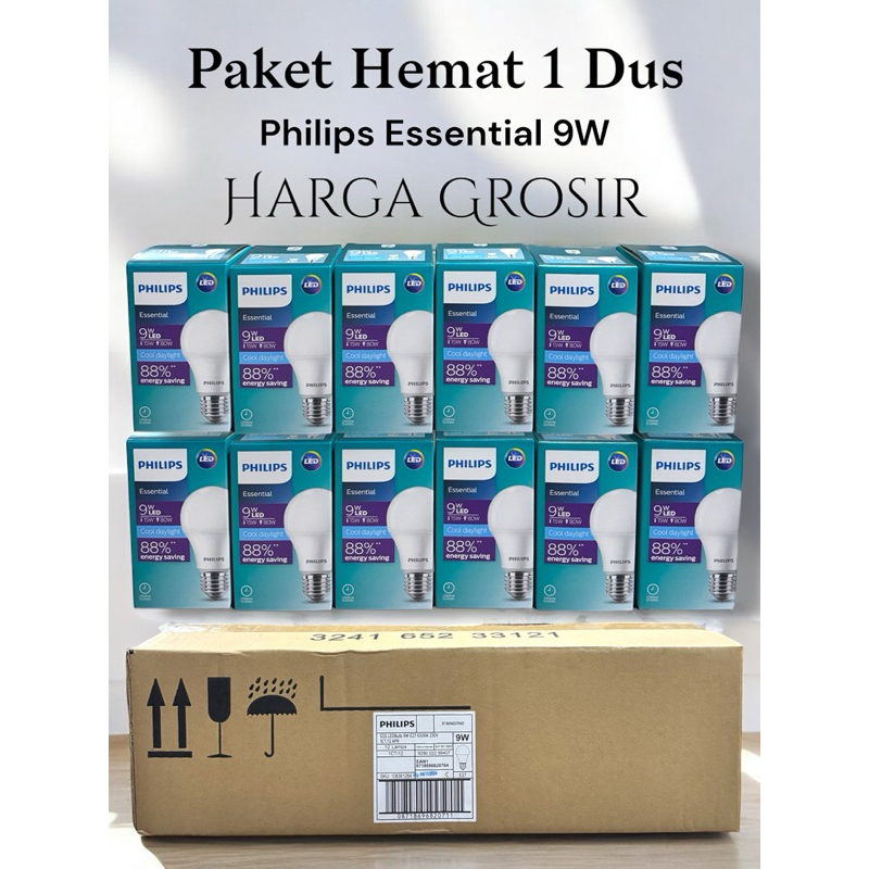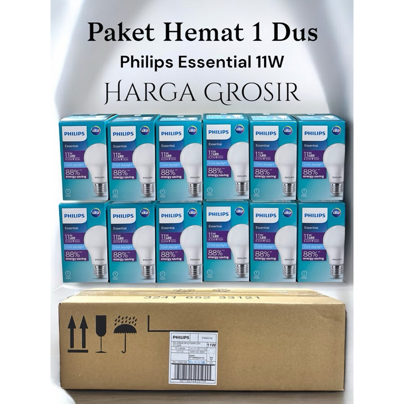 [ PAKET 1 DUS ISI 12 PCS ] LAMPU PHILIPS LED ESSENTIAL 3W 5W 7W 9W 11W 13W 15W [ 3 5 7 9 11 13 15 ] W WATT BELI 3 GRATIS 1