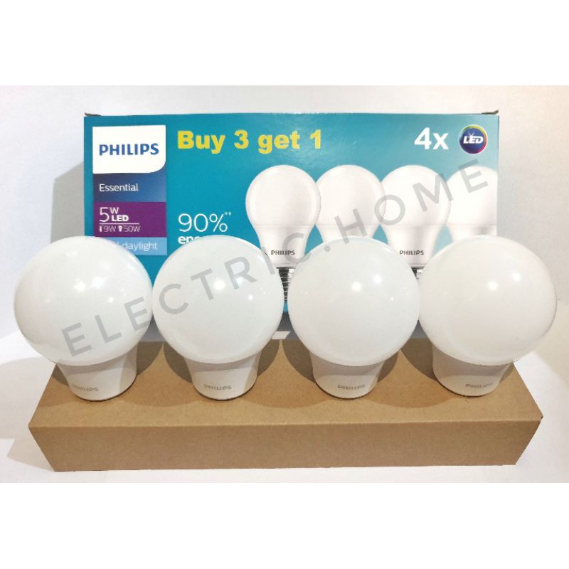 Paket isi 4 lampu PHILIPS LED Essential 5 WATT 5W PUTIH LED PAKET PHILIPS 5 WATT