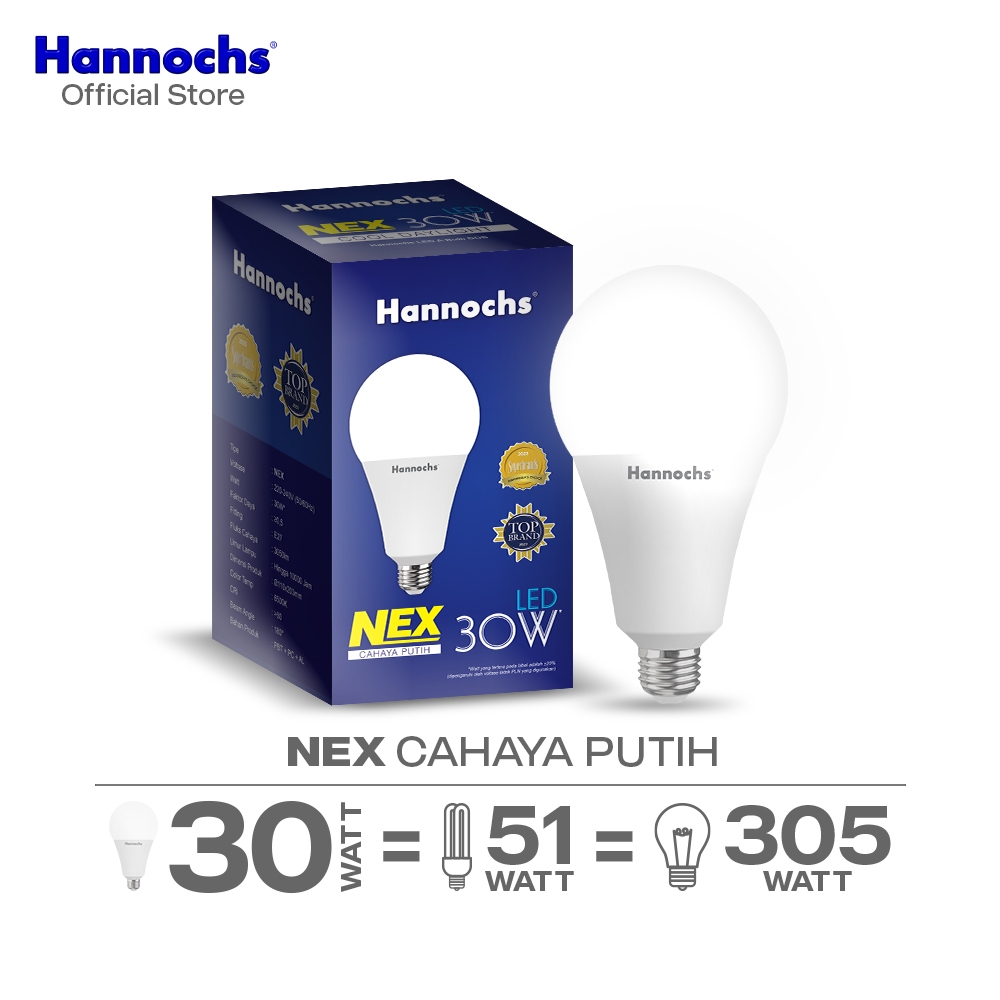Hannochs Lampu Bohlam LED NEX 30W Cahaya Putih Paket isi 3pcs