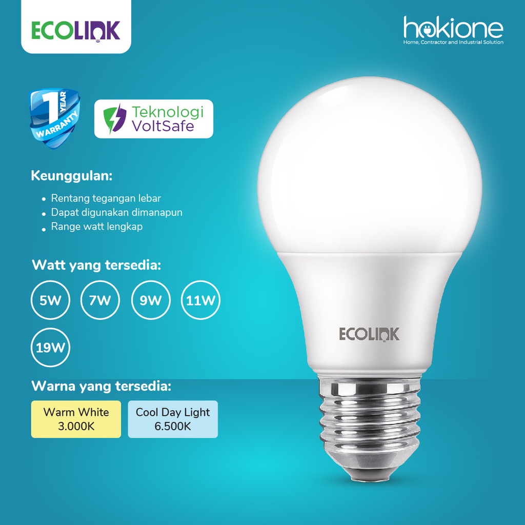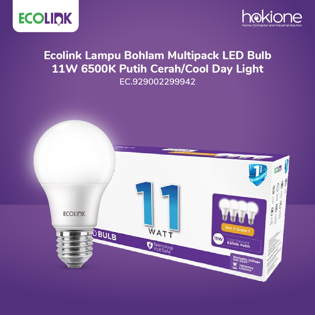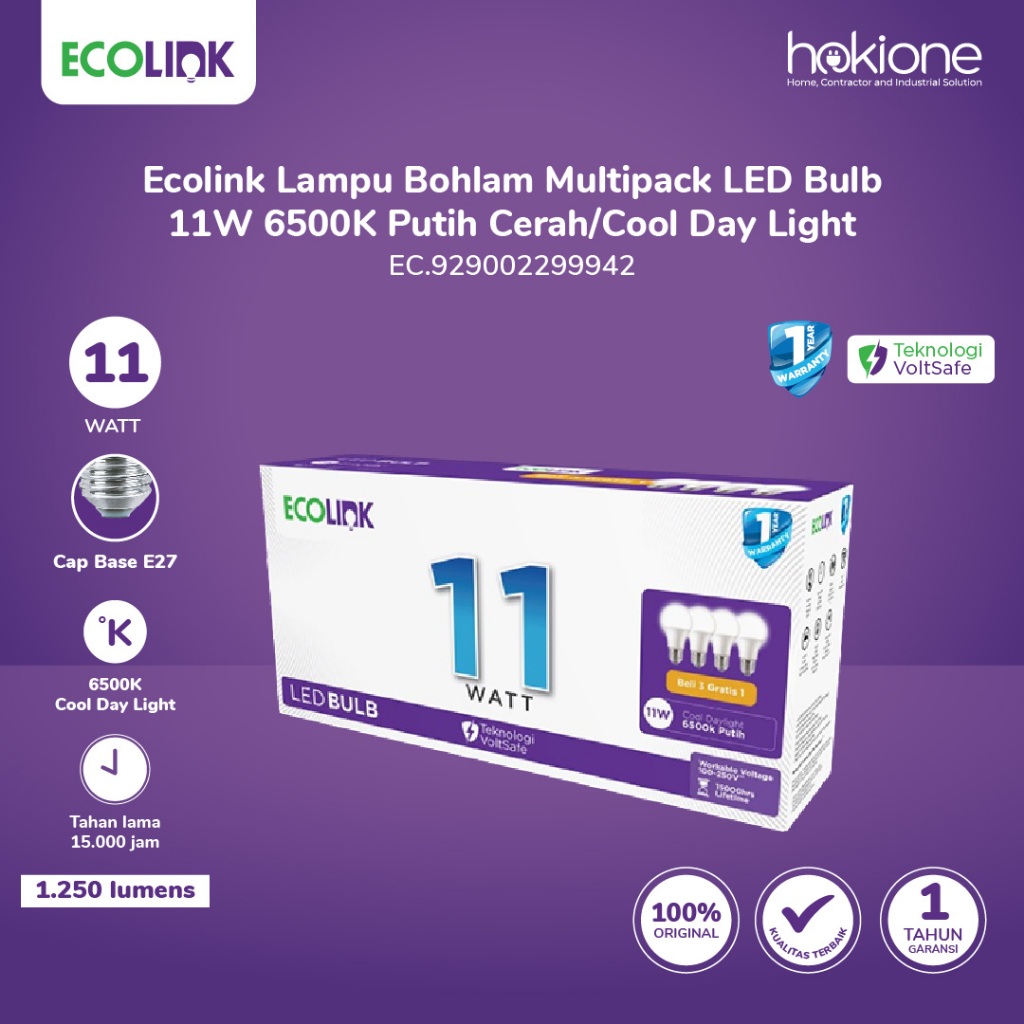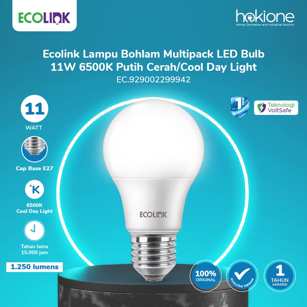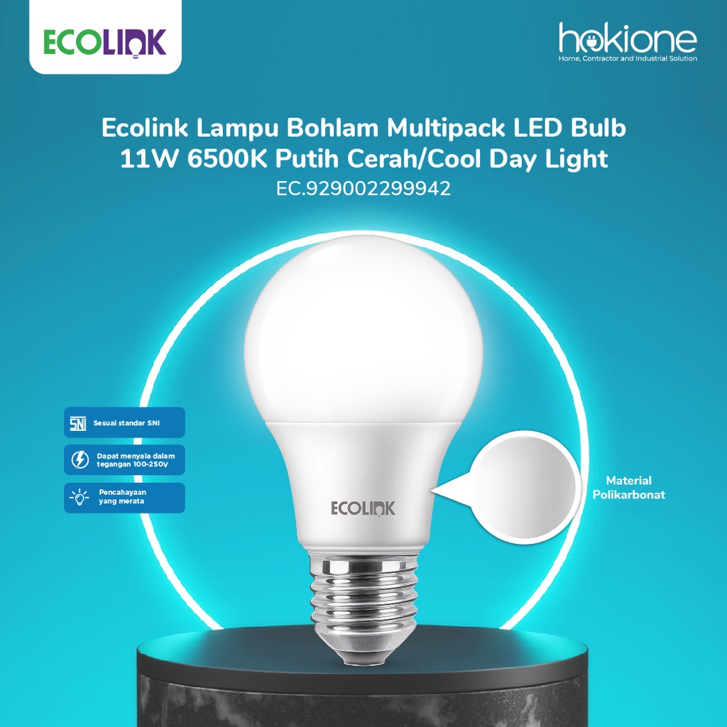 Ecolink Lampu Bohlam Multipack LED Bulb 11W 6500K Putih Cerah/Cool Day Light