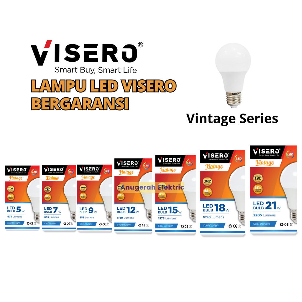 Lampu LED Visero Vintage 5W 7W 9W 12W 15W 18W 21W Bohlam Cahaya Putih Bulb Bergaransi E27
