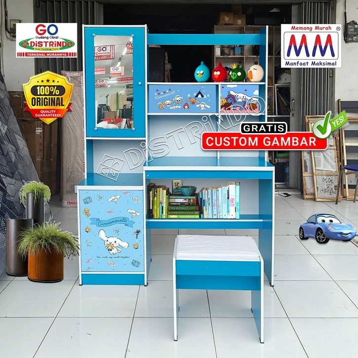 Meja Belajar Anak + Rias Gambar Hello Kitty Ada Lemari Komplit Tempat Duduk Kuat dan Kokoh