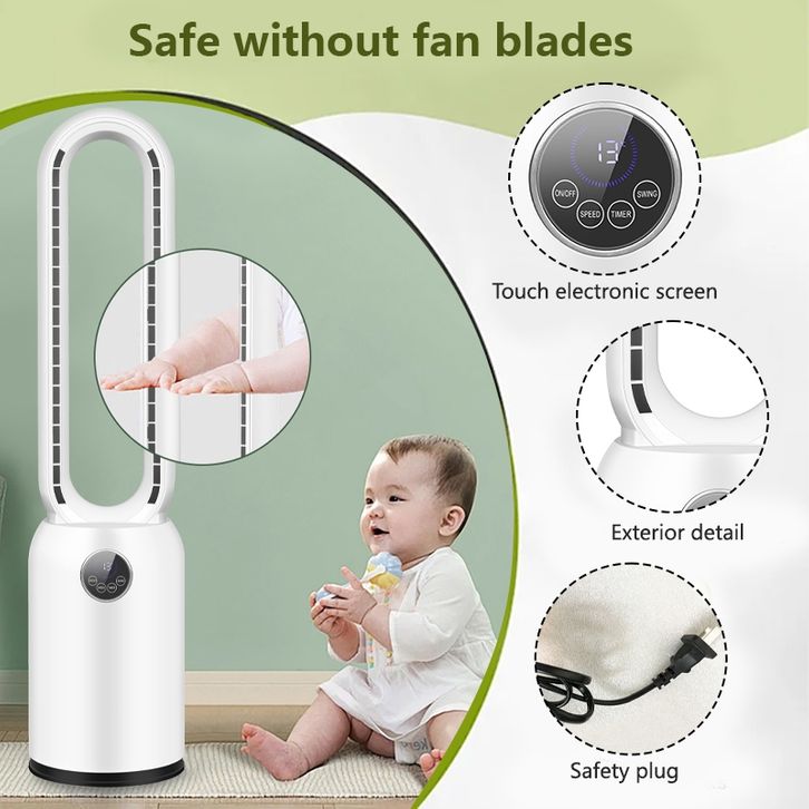 KANAZAWA Kipas Tanpa Baling-baling dengan Layar Led Berputar 120° Kiri dan Kanan