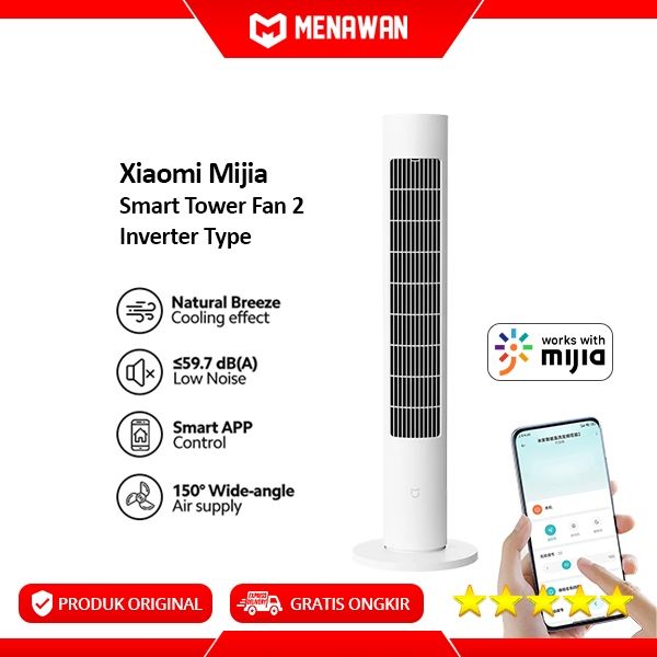 Xiaomi Mijia Smart Tower Fan 2 Inverter Kipas Angin Lantai Berdiri Besar Bladeless Cerdas App Control Original