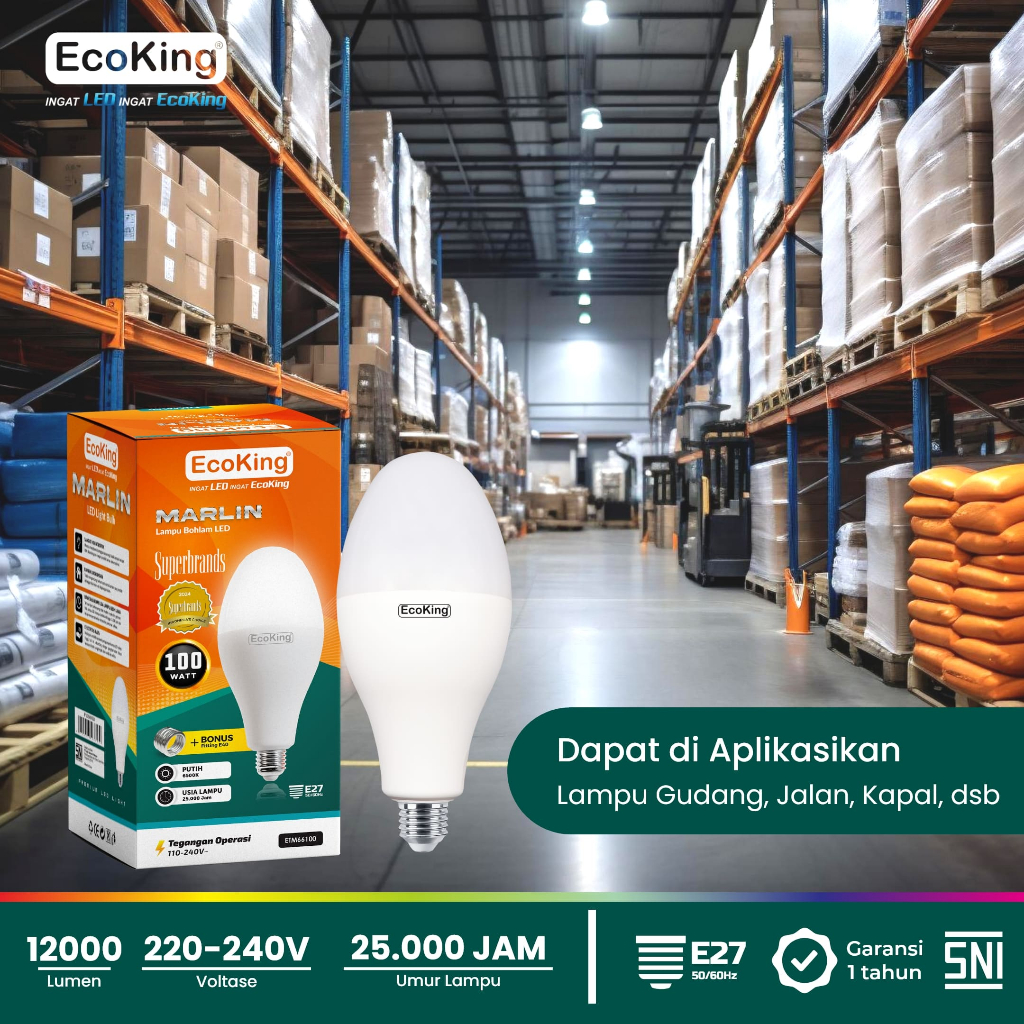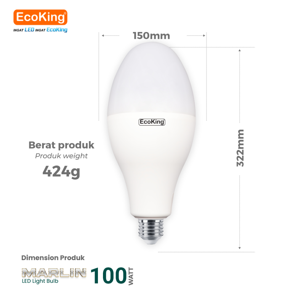 EcoKing Lampu Bohlam LED Non-Mercury Marlin 100W Cahaya Putih (ETM66100DL)