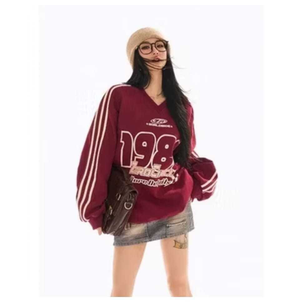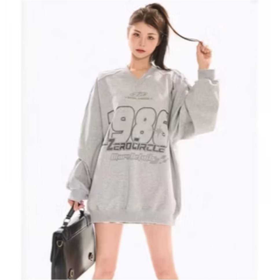 Zero Circle 1986 V Neck Sweater Wanita Oversize