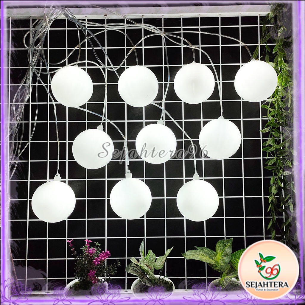 Lampu Bola Plastik Gantung Putih Susu LED 1 Set Isi 10 - Bulb Tumblr Lighting Hiasan Dekorasi Pelaminan