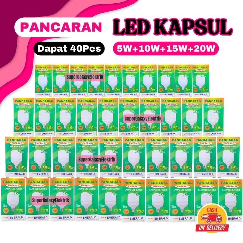 Paket Campur 10Pcs 5W+10W+15W+20W INALUX & PANCARAN LED Ekonomis (Total 40Pcs) Bohlam Kapsul E27 SNI
