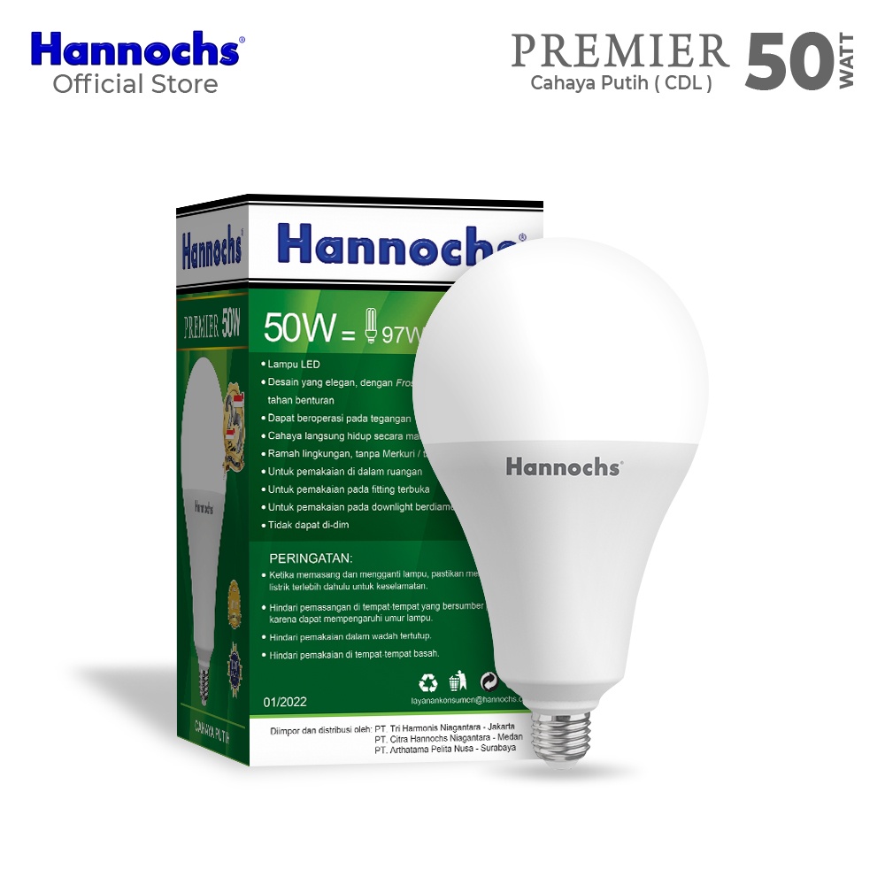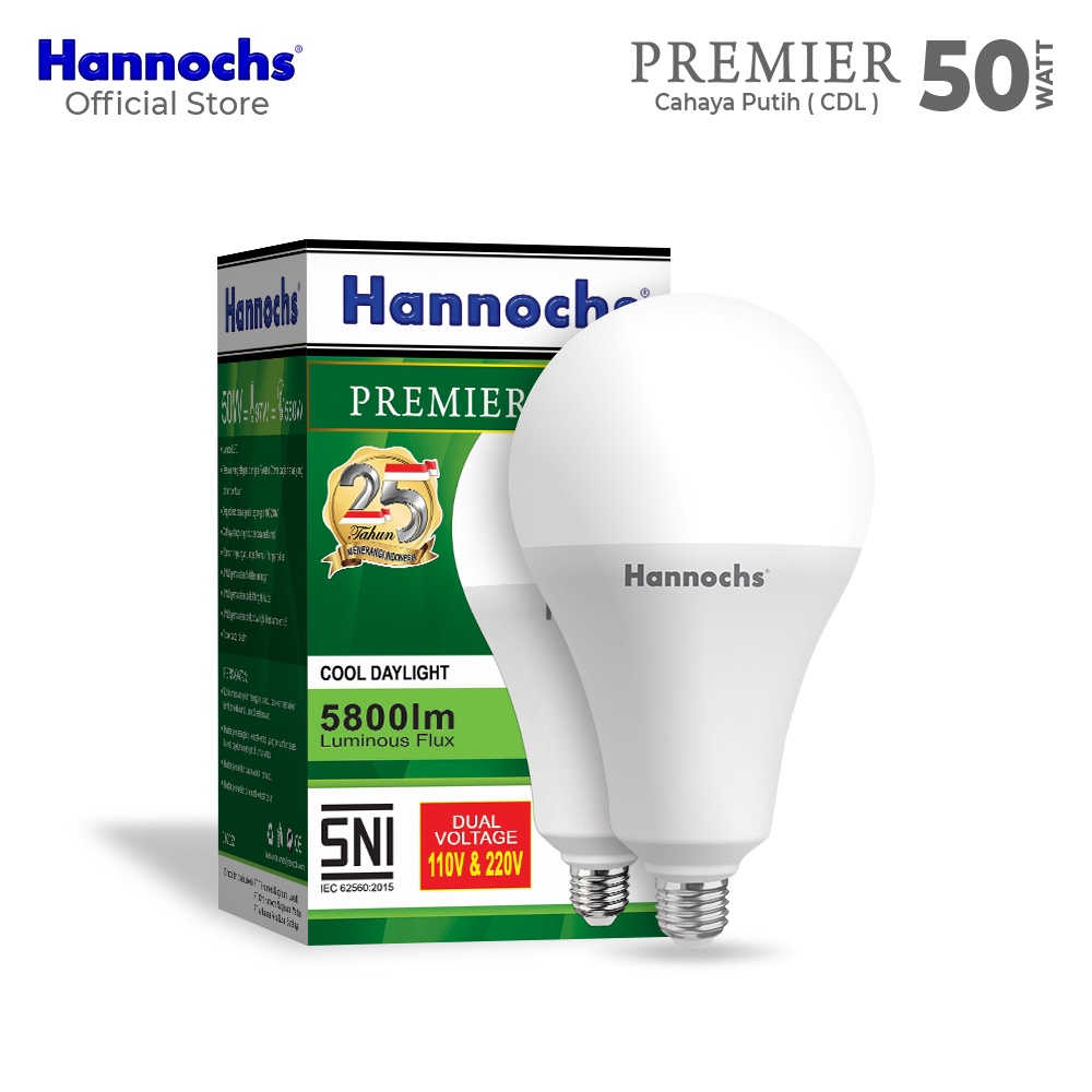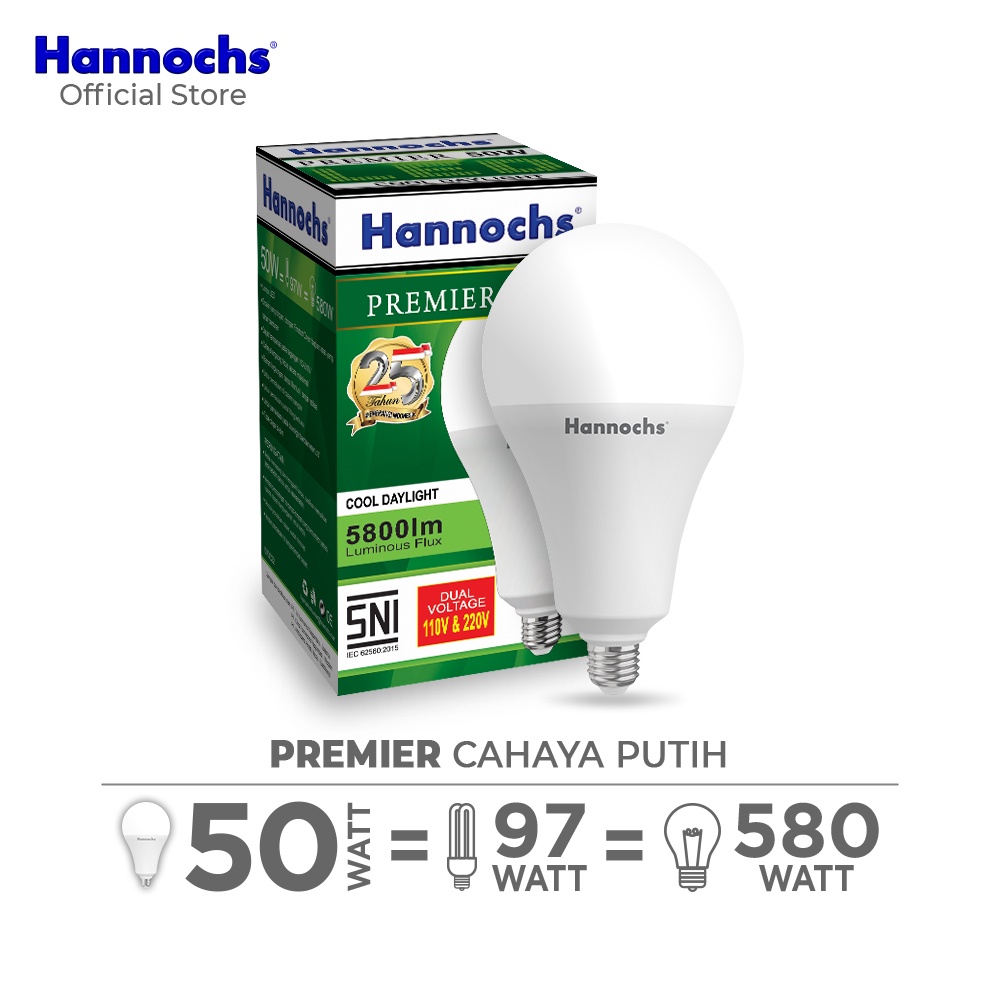 Hannochs Lampu Bohlam LED Premier 50 Watt Cahaya Putih
