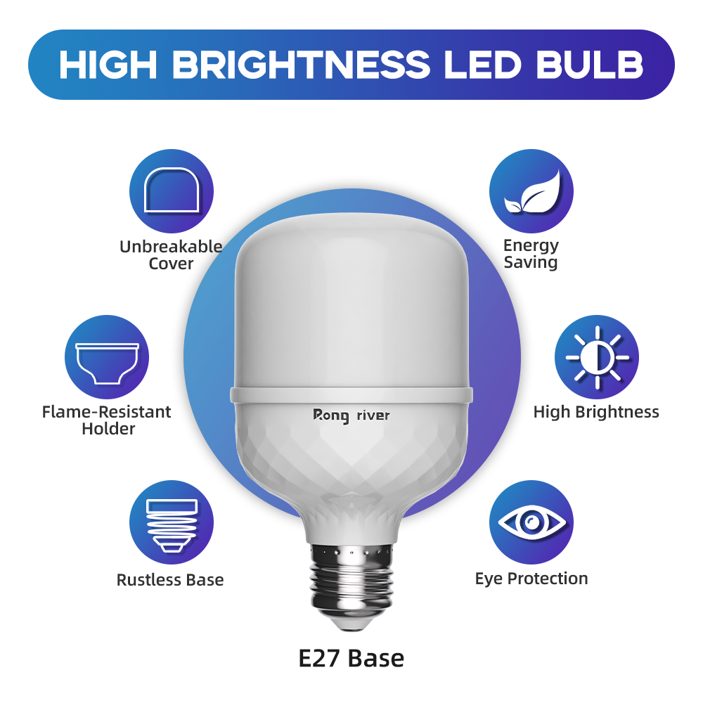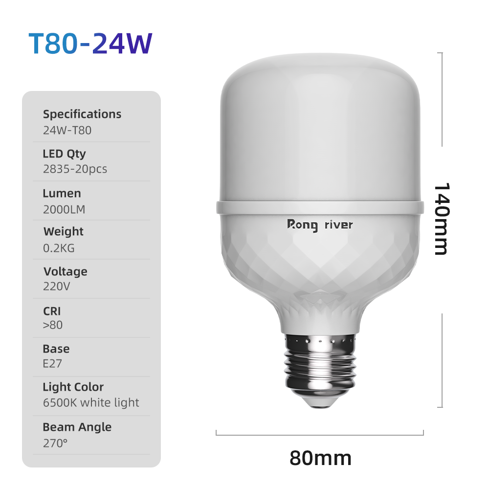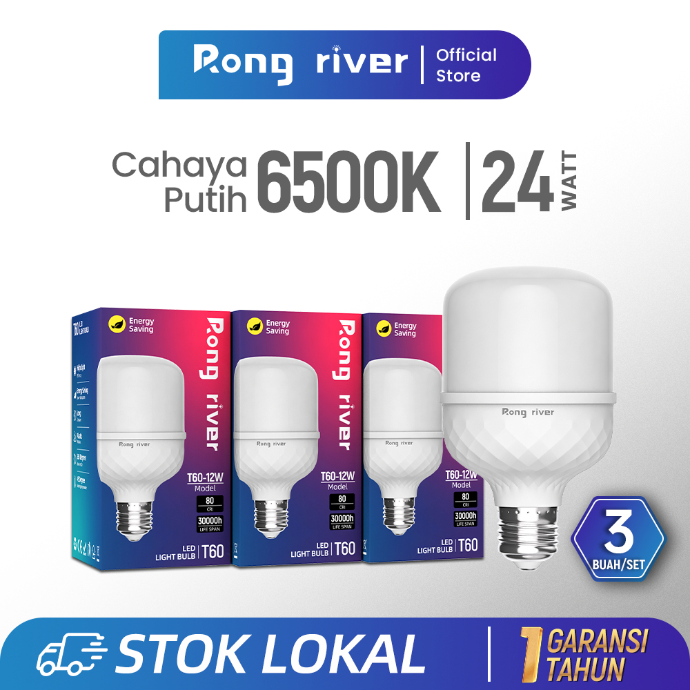 RONG RIVER 3Buah 24Watt Lampu LED Bohlam Cahaya Putih 6500K Bohlam LED
