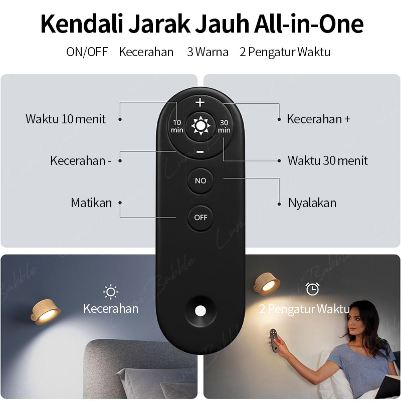 Lampu Dinding 360° Bola Magnetik Putar LED Sconces USB Dapat Diisi Ulang Pengendalian Sentuh Terangkat Tanpa Kabel