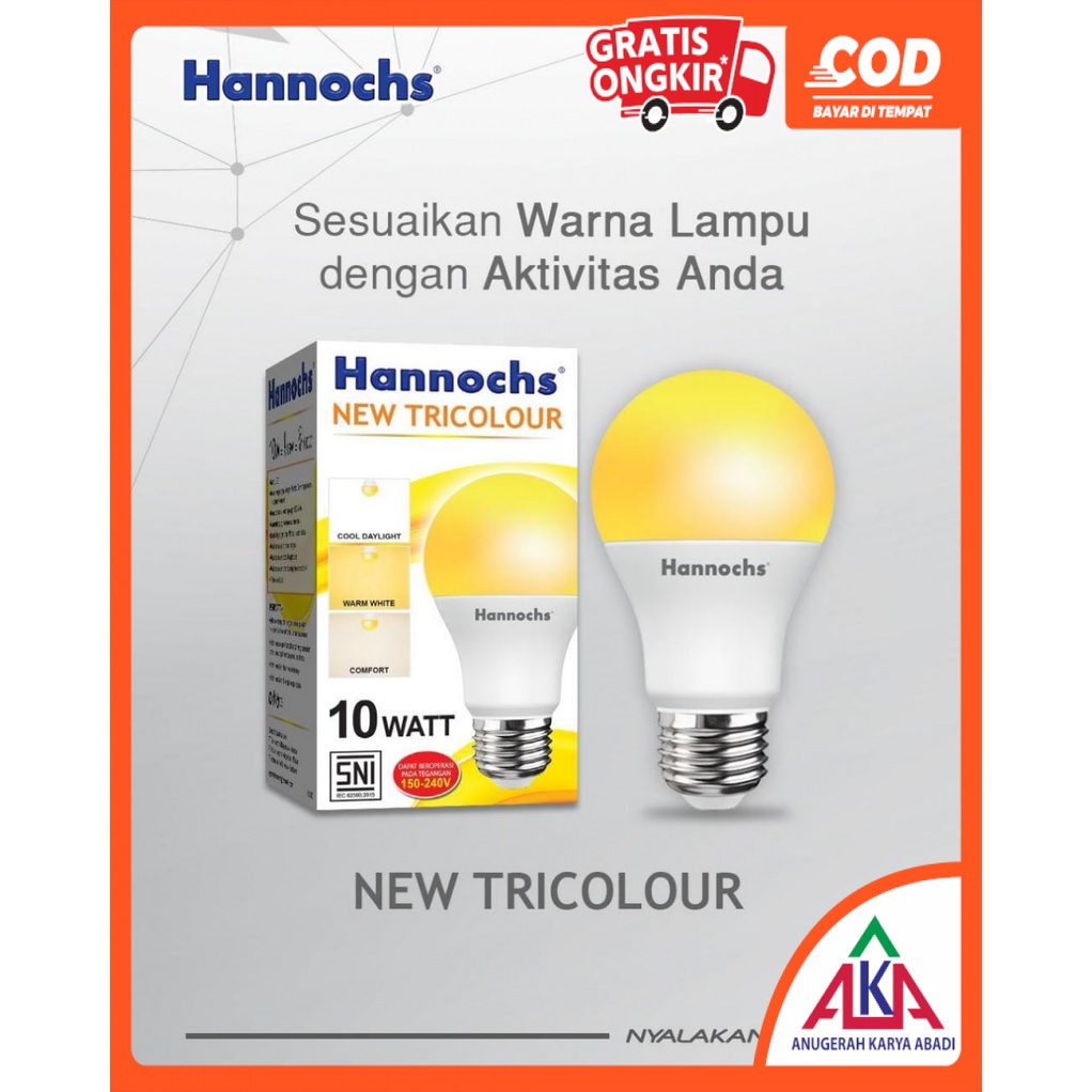 HANNOCHS NEW TRICOLOUR Bohlam Lampu LED 3 IN 1 10 Watt SNI