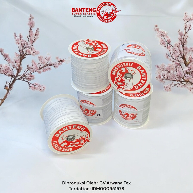 Karet Elastis Banteng 6mm 97 Meter / 8mm 85 Meter Warna Putih Grade A Per Roll FullPolyester - Banteng Elastic Band Supe