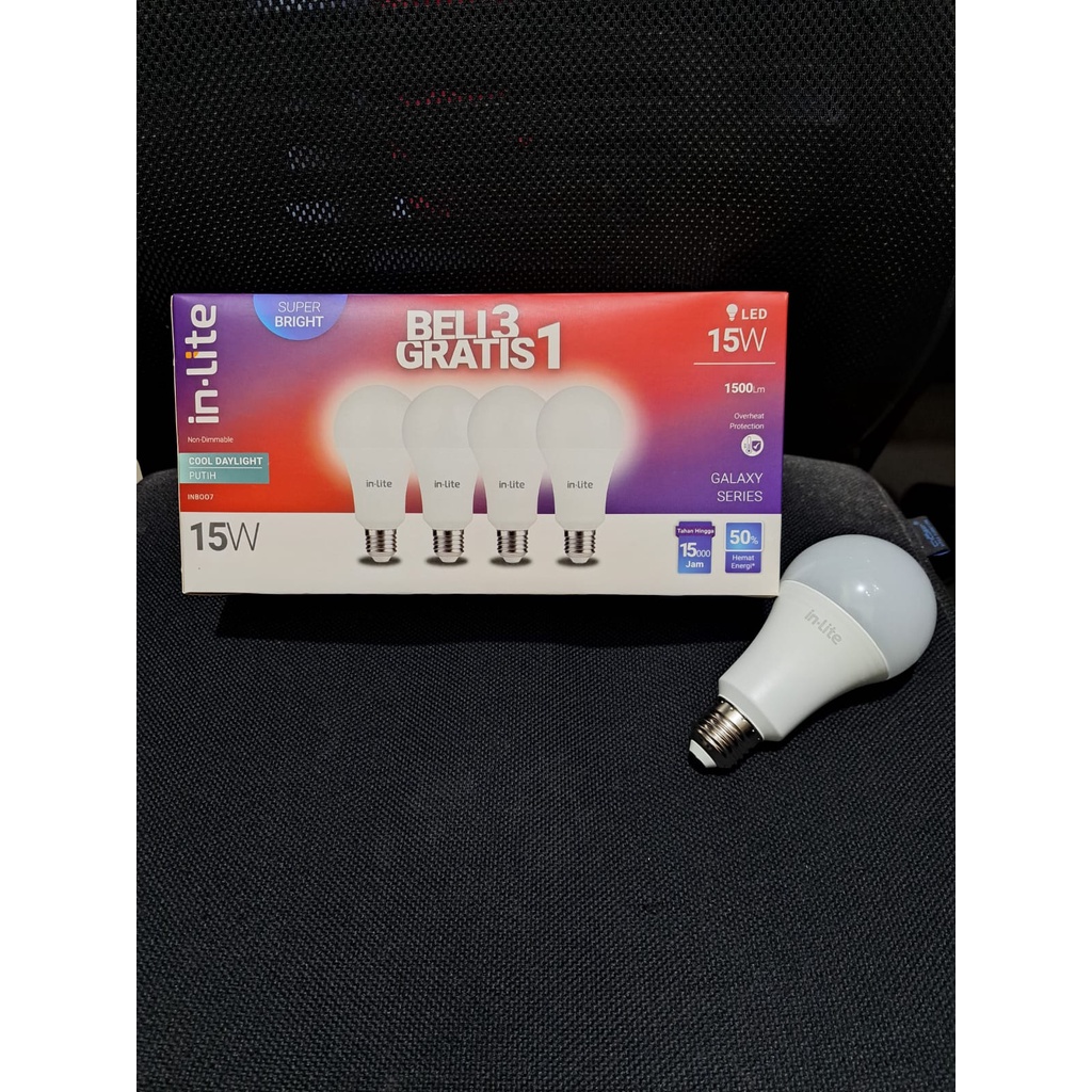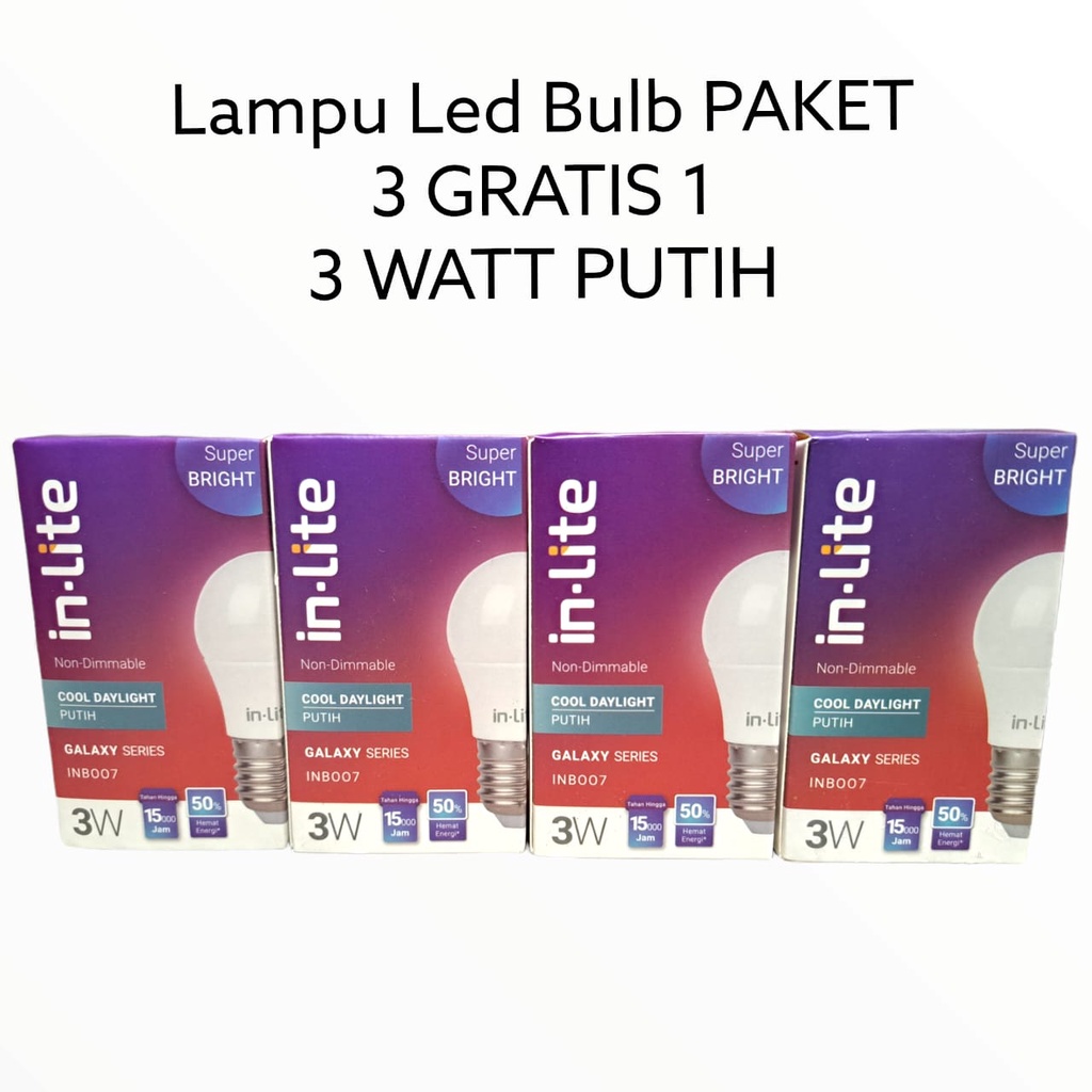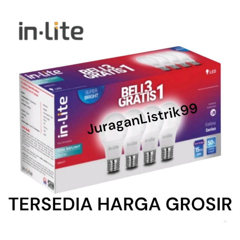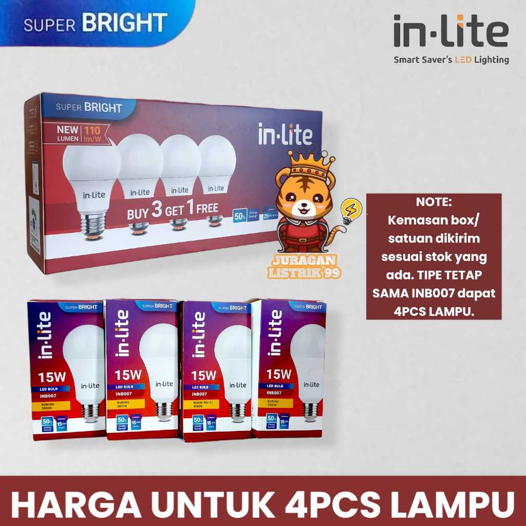 INLITE - PAKET HEMAT 3 GRATIS 1 LAMPU LED BULB INB007 5W 7W 9W 12W 15W 18W / LAMPU LED / BOHLAM LED / LAMPU BOHLAM