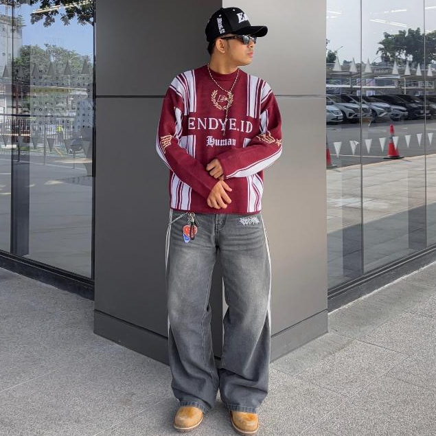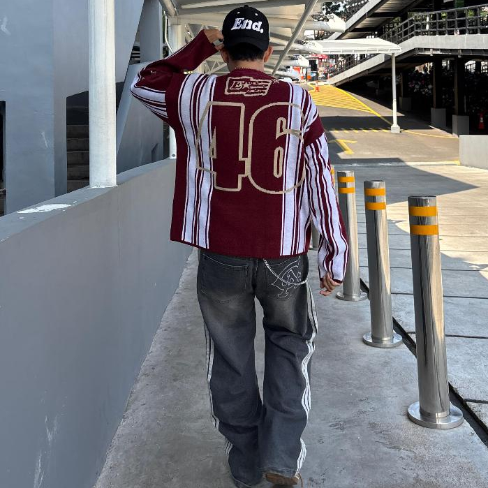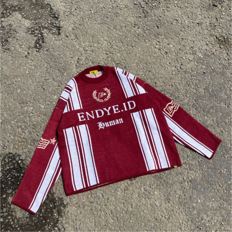 Endye.Id - Knitwear Boxy Buvy Maroon Football Knit Switer Unisex /Sweater Rajut Pria & Wanita